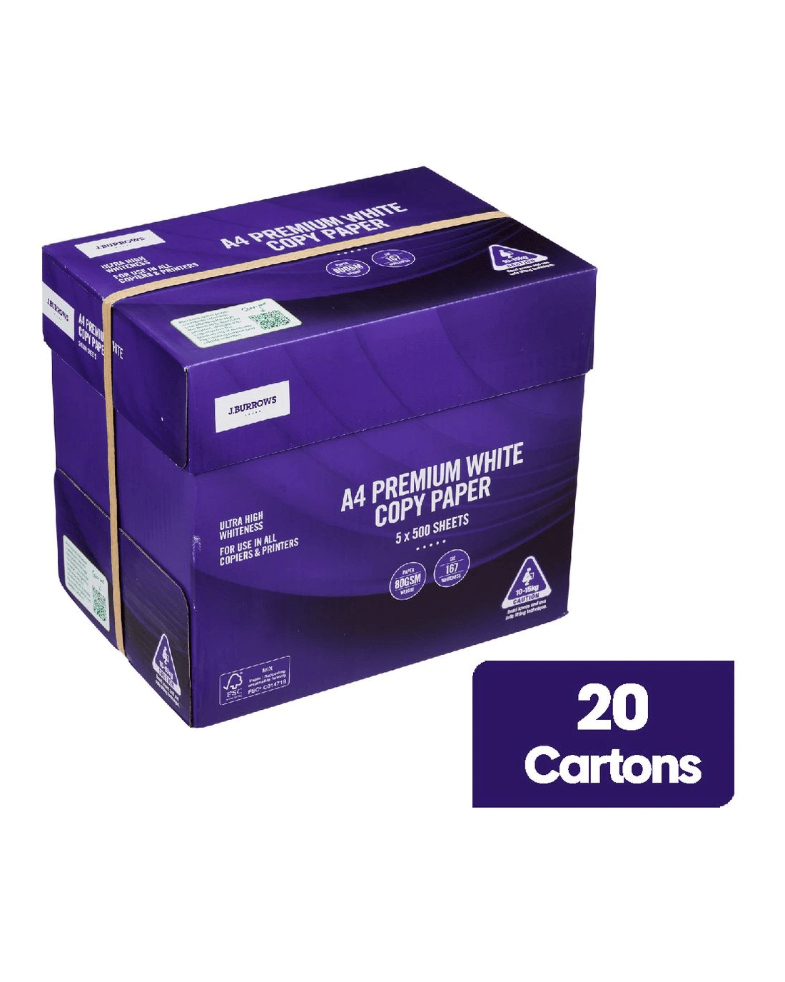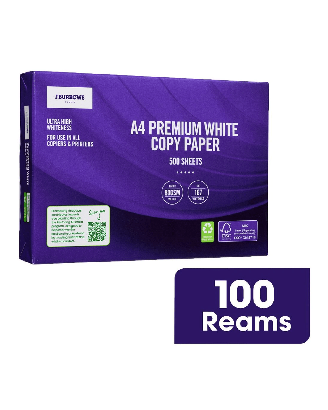 Sold by OfficeworksJ.Burrows 80gsm Premium A4 Copy Paper 100 Ream Pallet