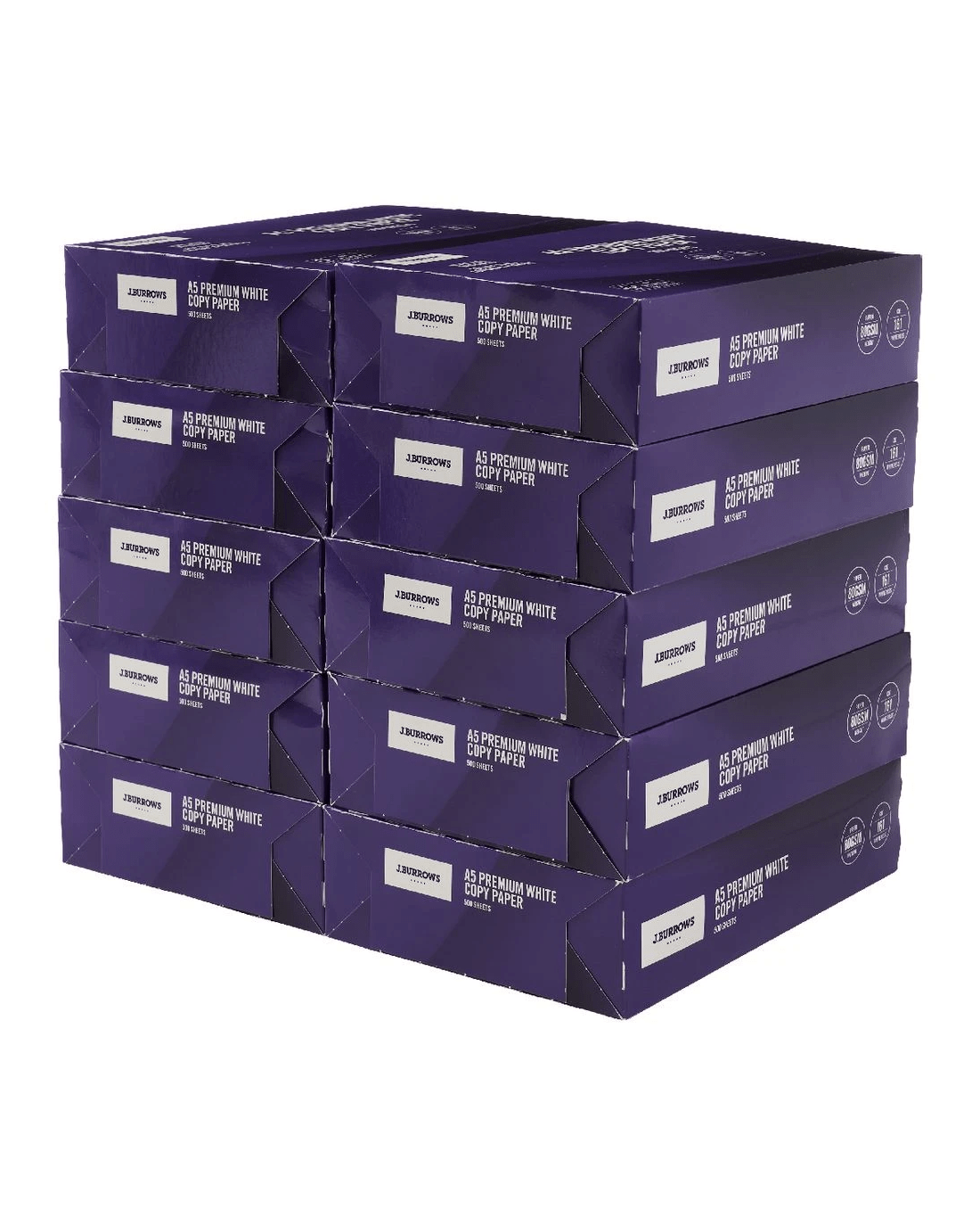 Sold by OfficeworksJ.Burrows 80gsm Premium A5 Copy Paper 500 Sheet Reams 10 Pack