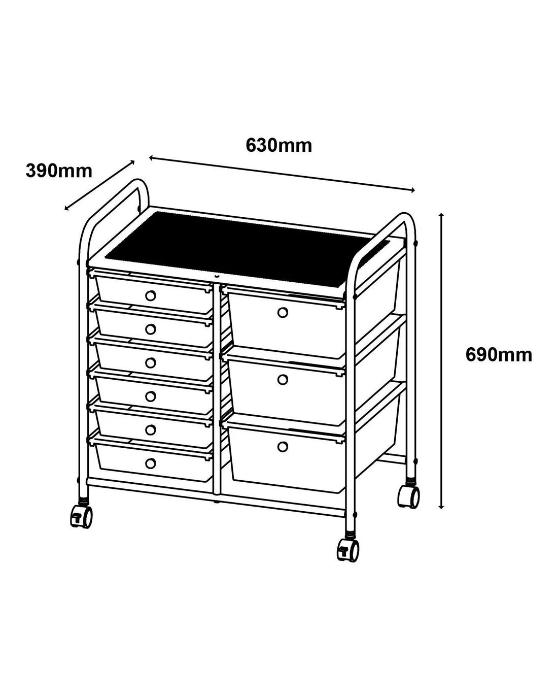 - The trolley has 6 small drawers and 3 large drawers to organise your files or loose items.