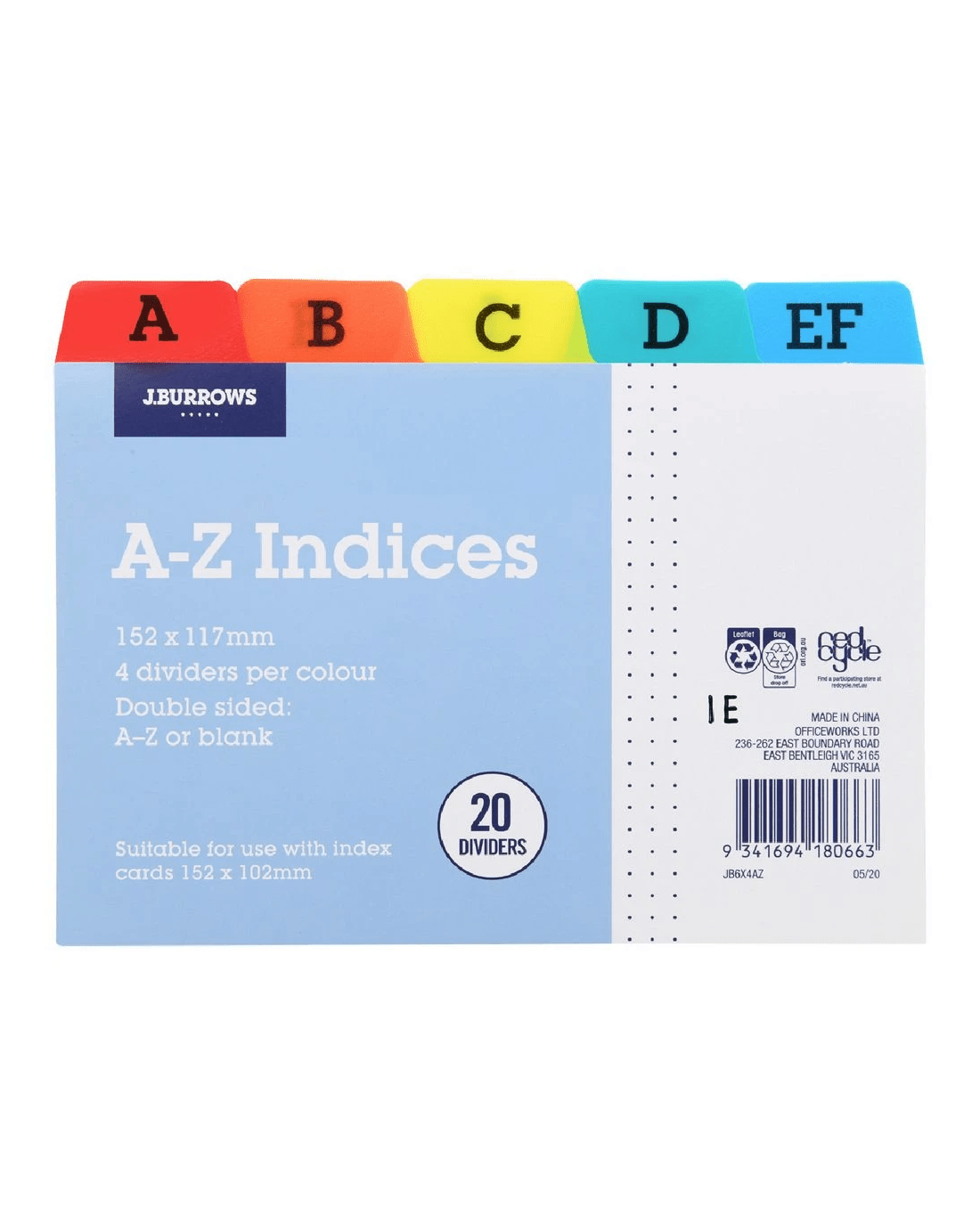 Sold by OfficeworksJ.Burrows A-Z Index Card Dividers 152 x 102mm