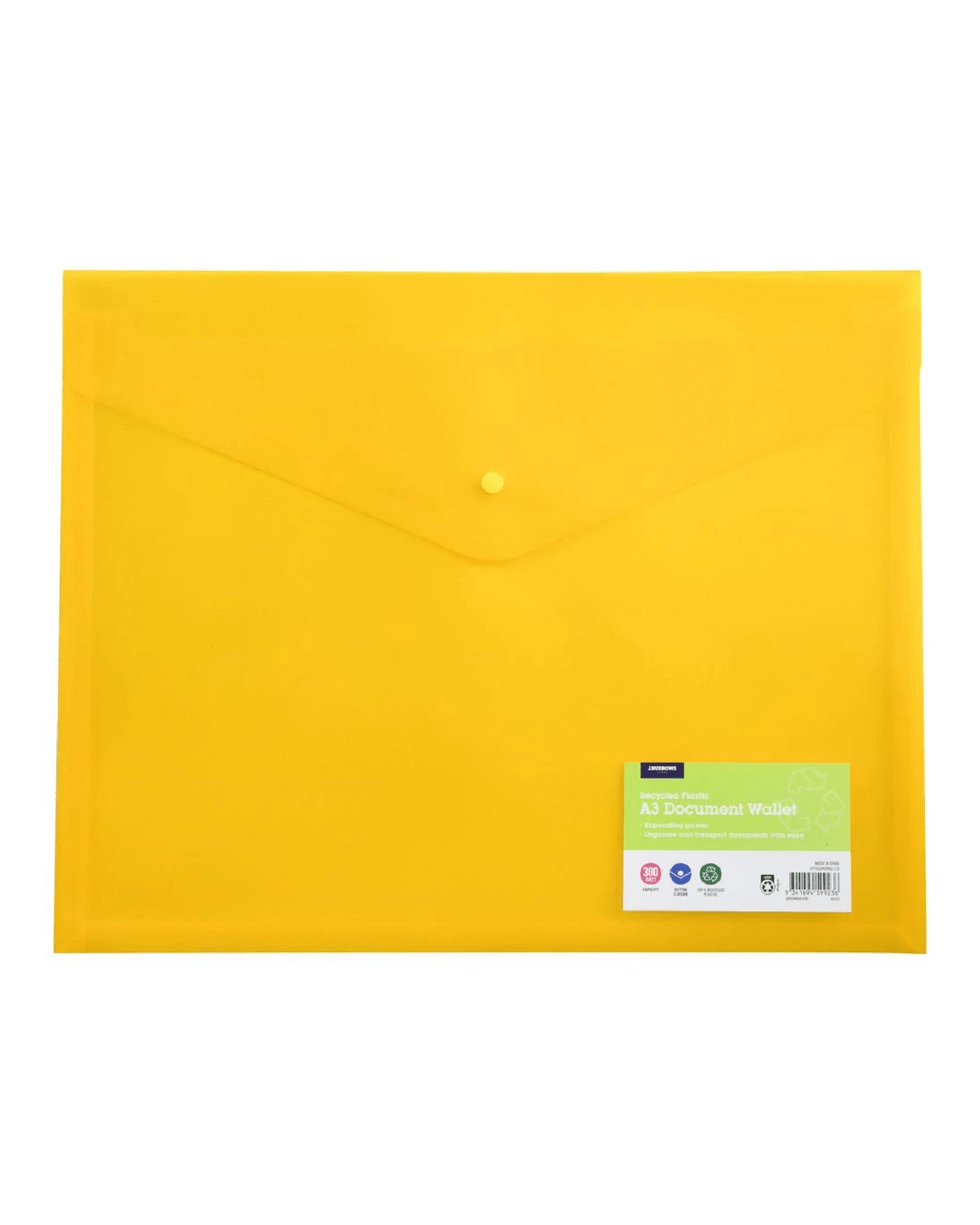 J.Burrows A3 Button Document Wallet Yellow