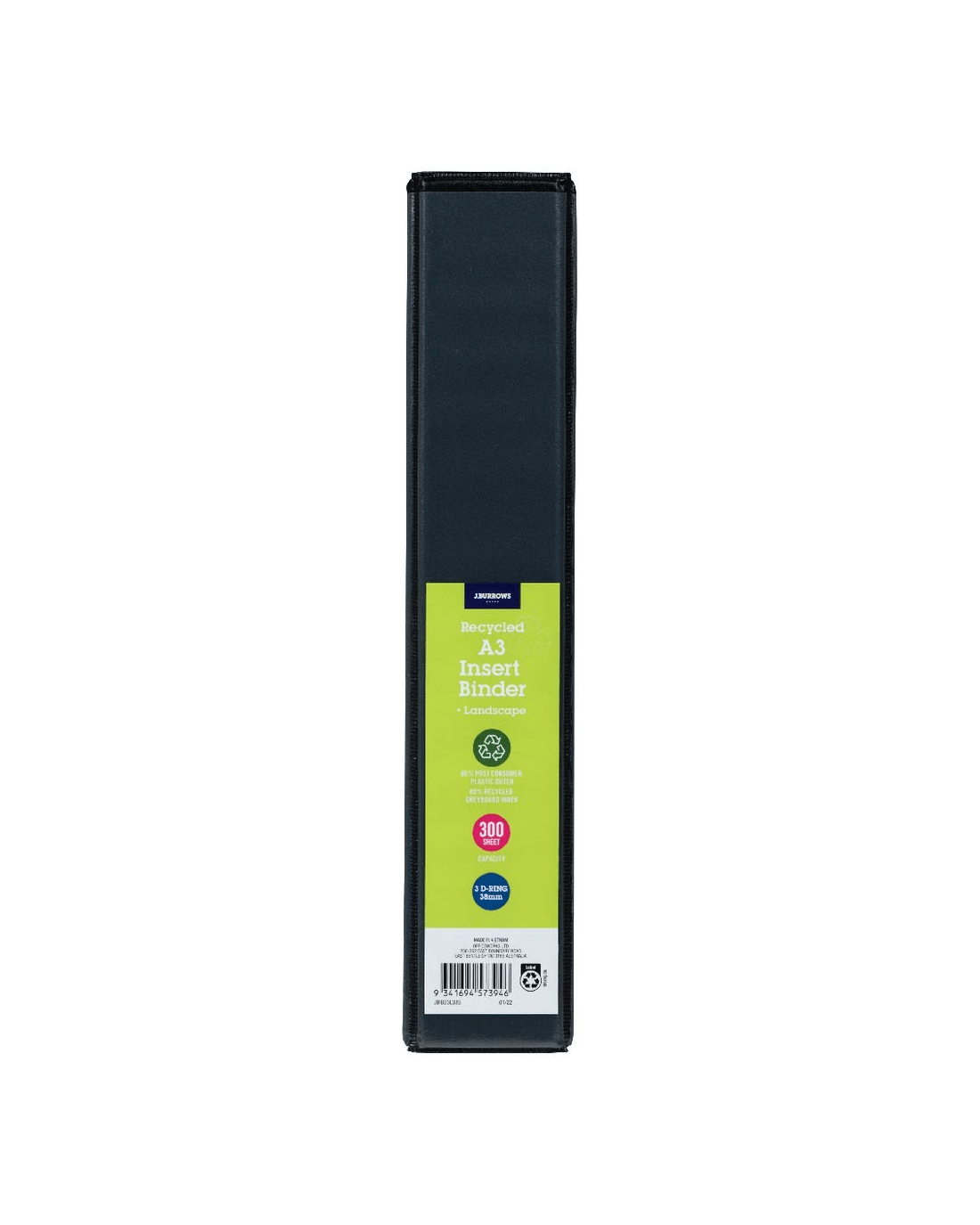 Sold by OfficeworksJ.Burrows A3 Insert Binder 3 D-Ring 38mm Black