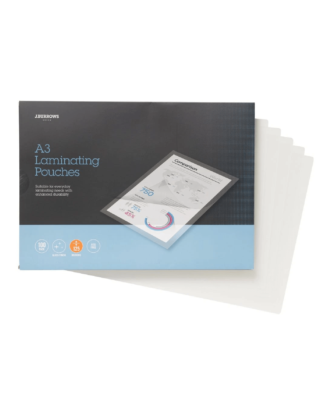 Sold by OfficeworksJ.Burrows A3 Laminating Pouches 125 Micron 100 Pack Clear