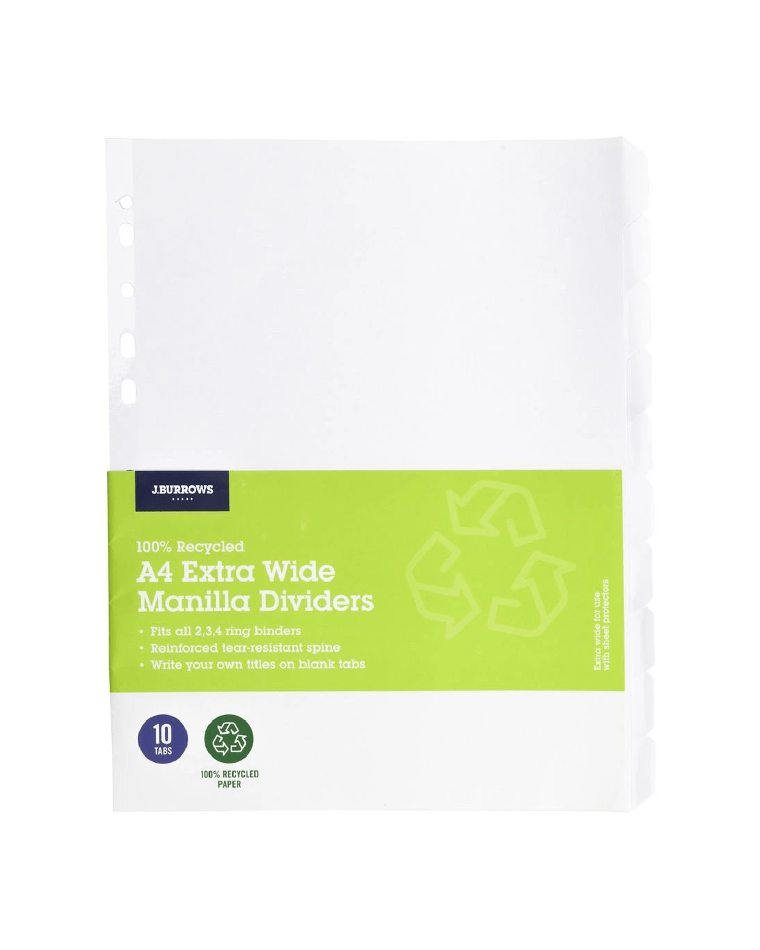 Sold by OfficeworksJ.Burrows A4 10 Tab Dividers Extra Wide Manilla White