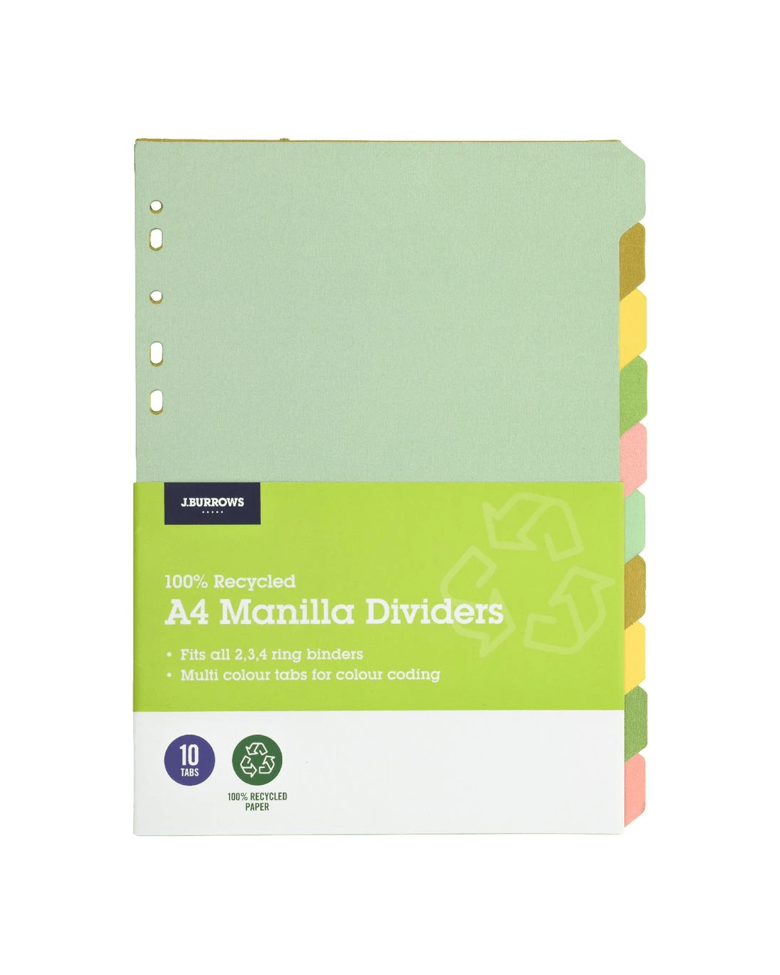 J.Burrows Dividers allow you to organise your documents and create a filing system right inside your binder. The dividers are multi coloured in fun pastel designs so you can colour code your documents.