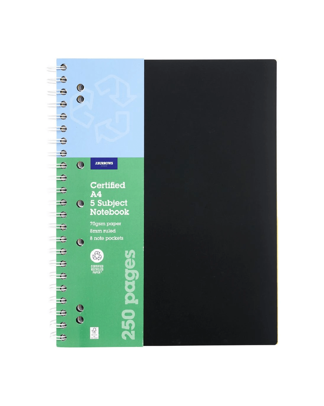 J.Burrows A4 5 Subject Notebook 250 Page Black