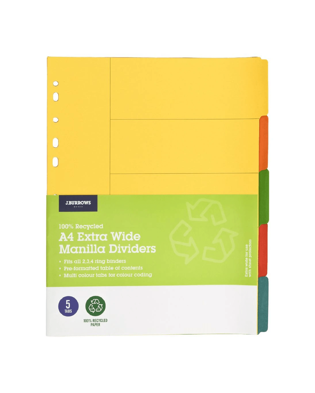 Sold by OfficeworksJ.Burrows A4 5 Tab Dividers Extra Wide Bright Colours