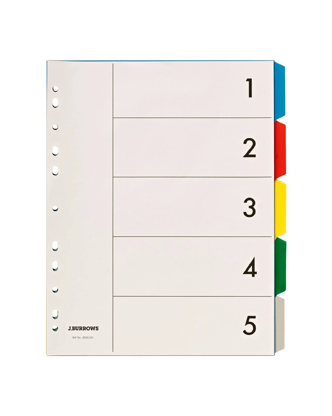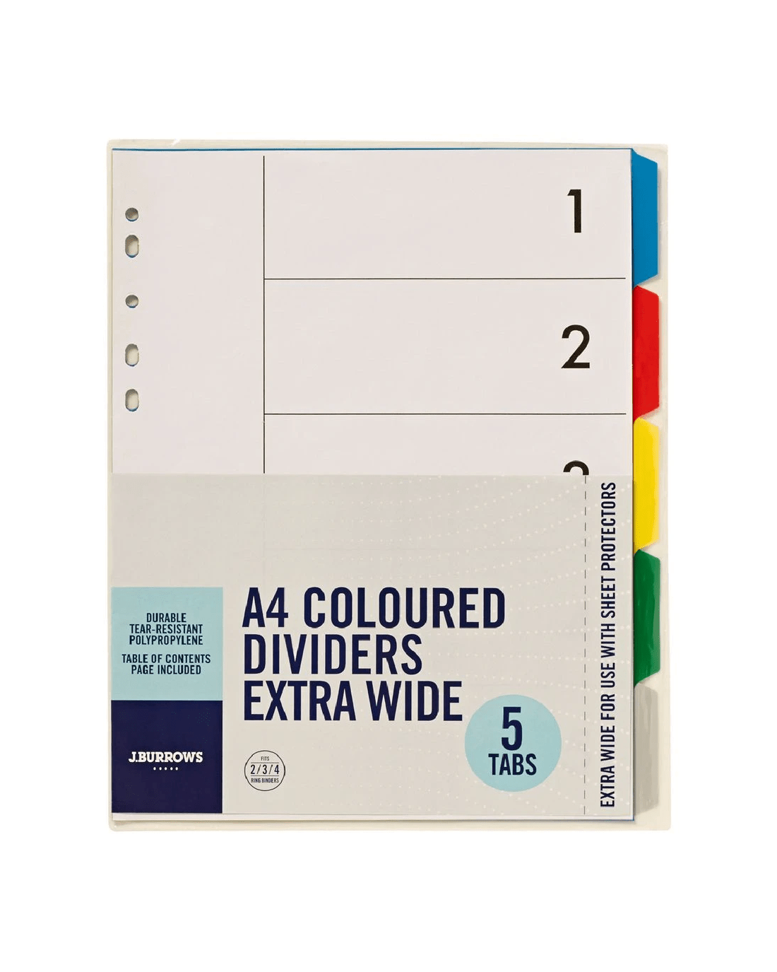 Sold by OfficeworksJ.Burrows A4 5 Tab Dividers Polypropylene Extra Wide