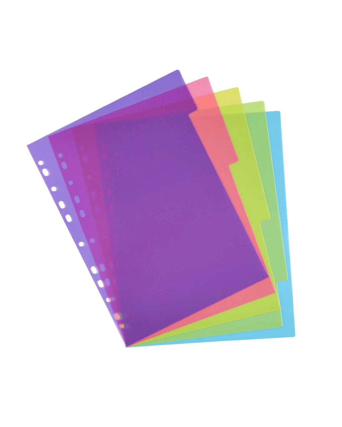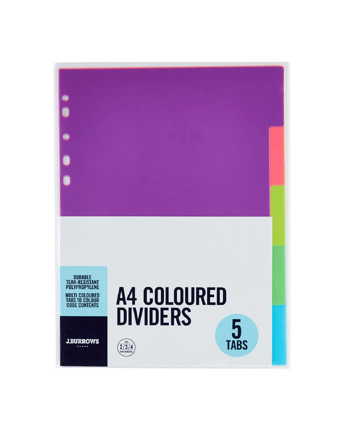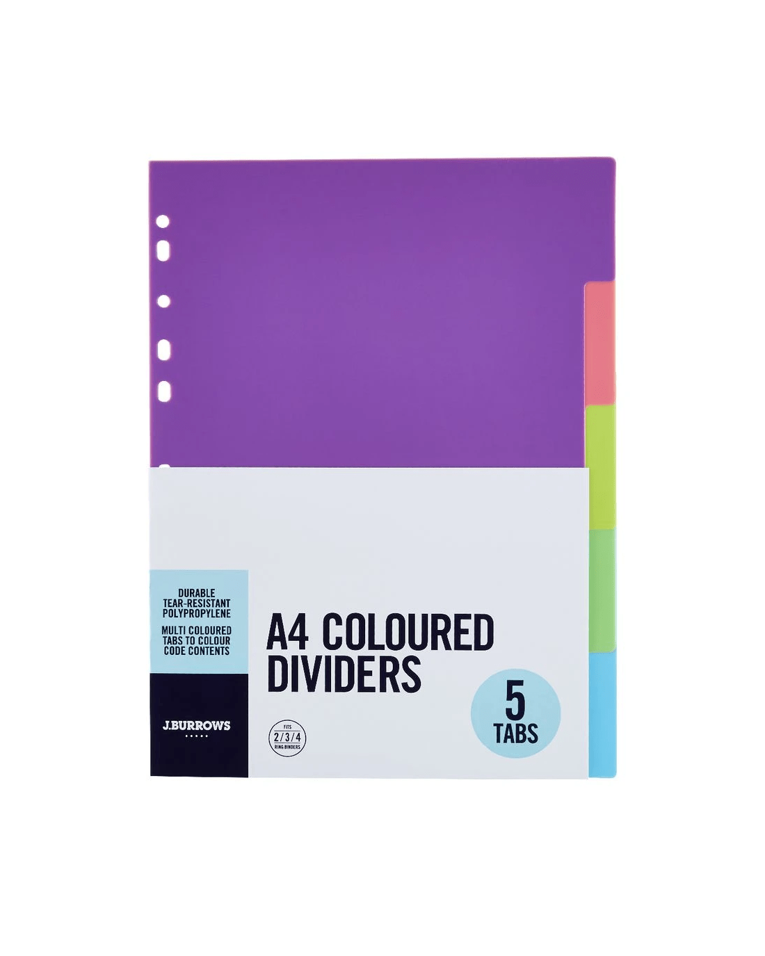 The J.Burrows Dividers allow for seamless organisation of your documents. Colour code each section by simply inserting them into your ring binder. With 5 tabbed dividers, this pack is perfect for separating small projects.