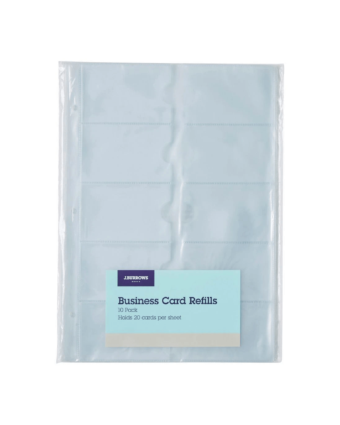 These J.Burrows Business Card Refills come in a handy pack of 10 so you can add up to 200 extra cards in your holder. The refills are clear so you can easily see your cards and are pre-punched for simple insertion.