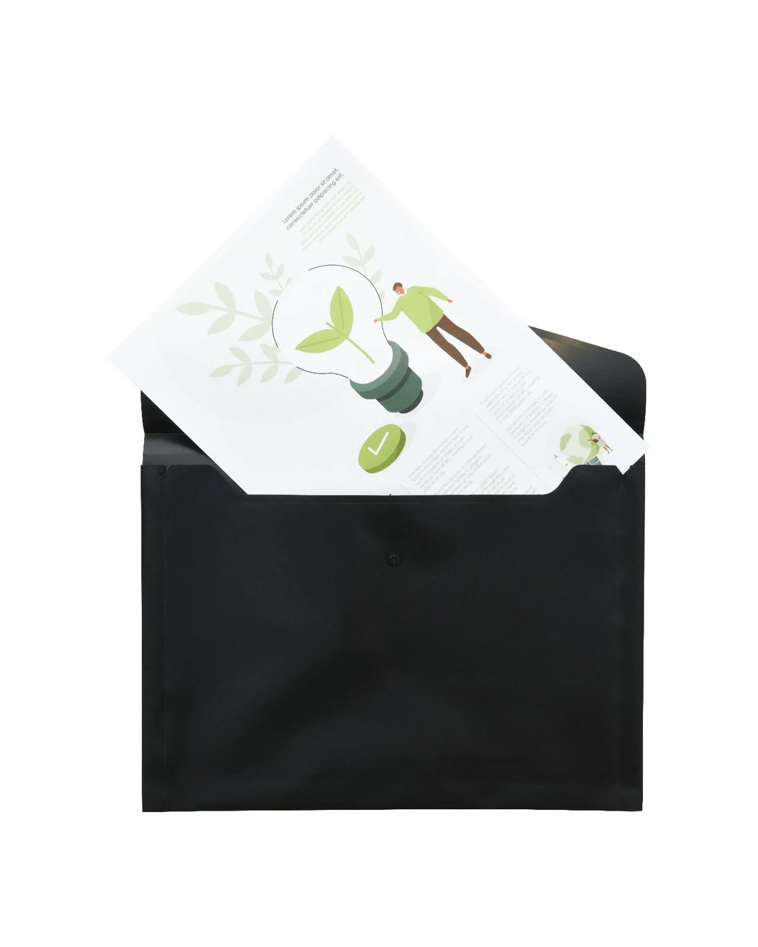 - The button closure will keep your papers safe and secure inside.