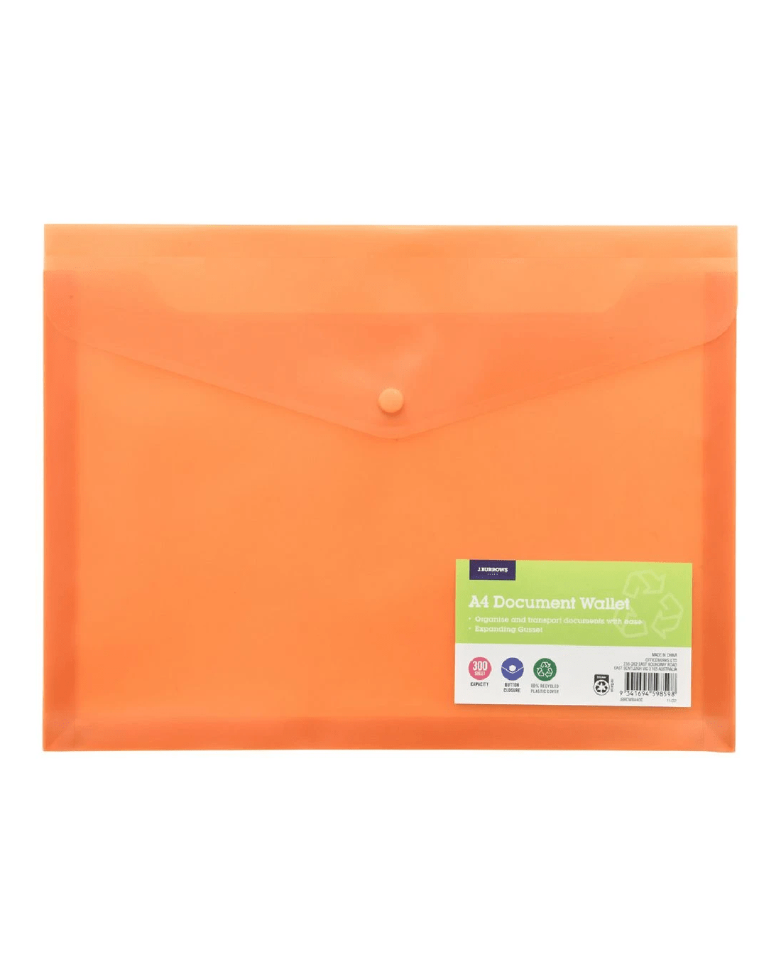 Sold by OfficeworksJ.Burrows A4 Button Document Wallet Orange