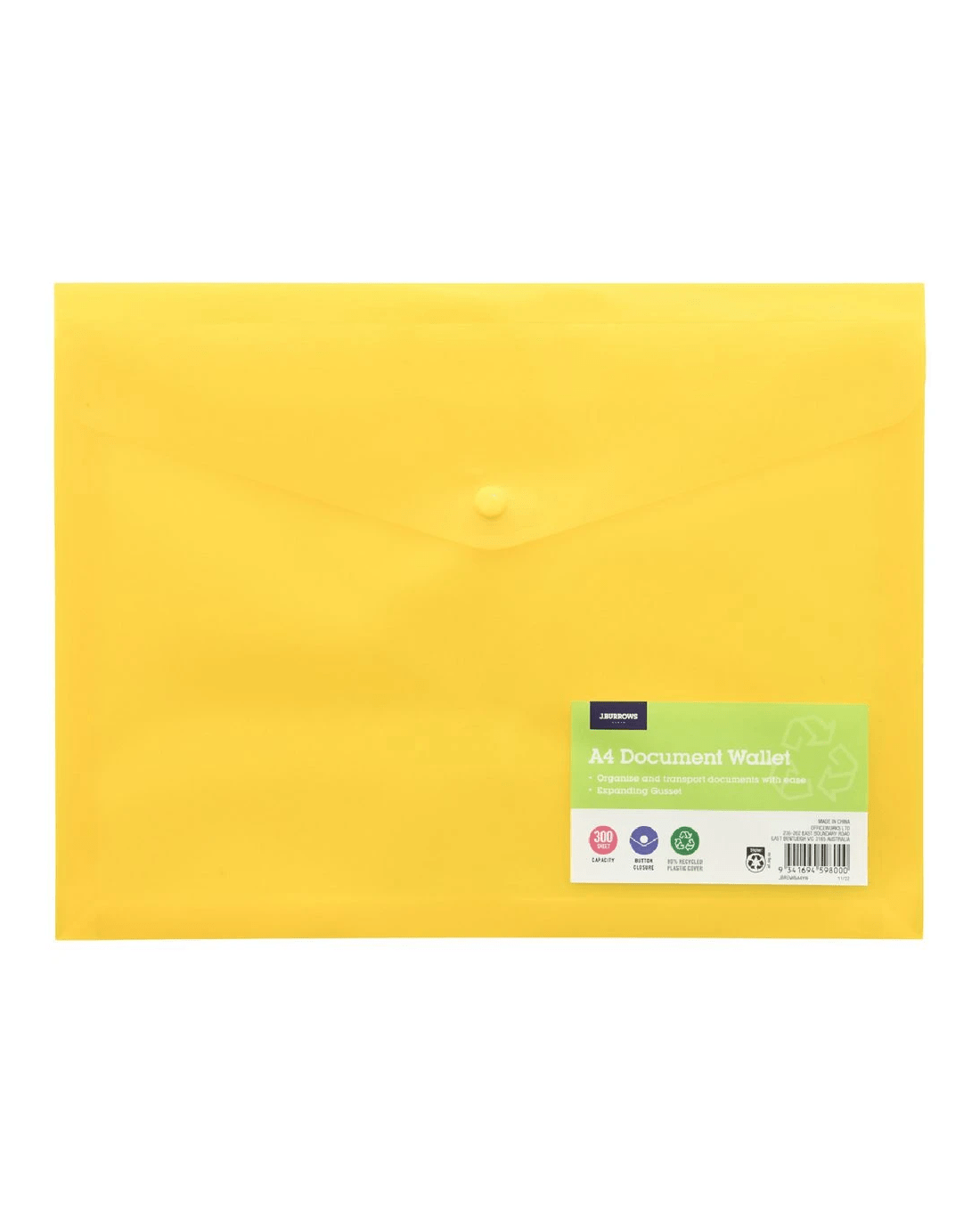 Sold by OfficeworksJ.Burrows A4 Button Document Wallet Yellow