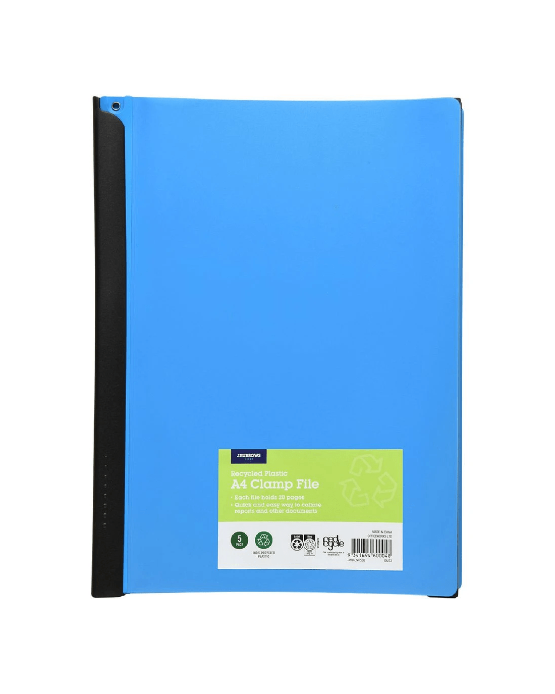 J.Burrows A4 Clamp Files 5 Pack Blue