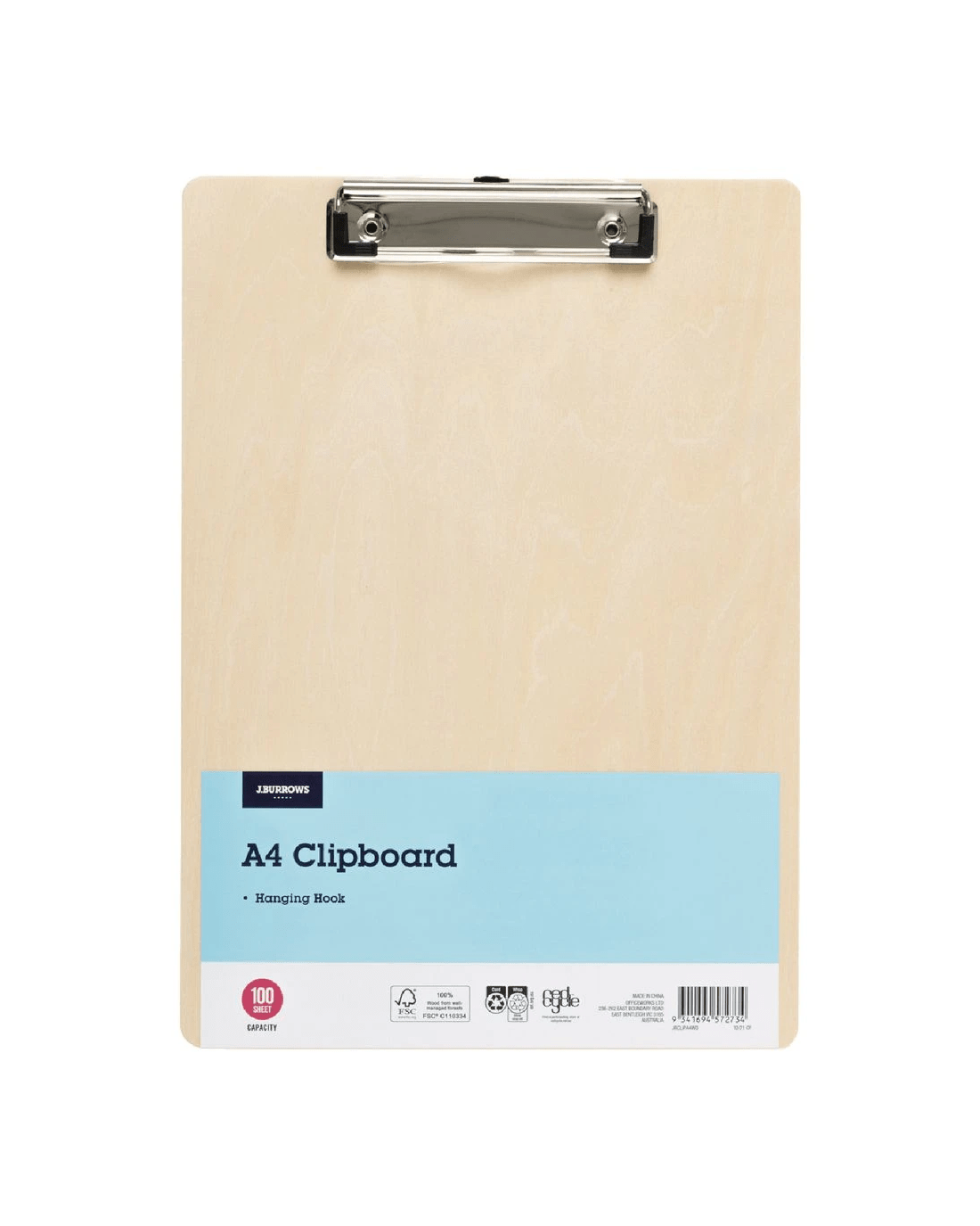 J.Burrows A4 Clipboard Natural Wood
