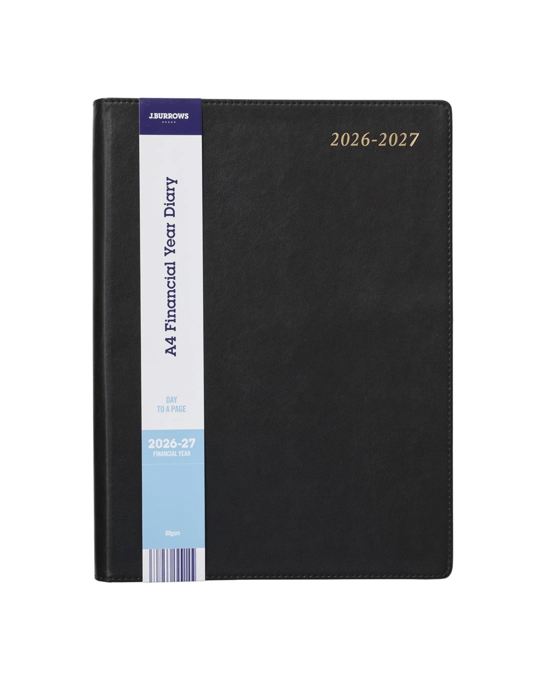 J.Burrows A4 Day to Page Executive FY26/27 Diary Black