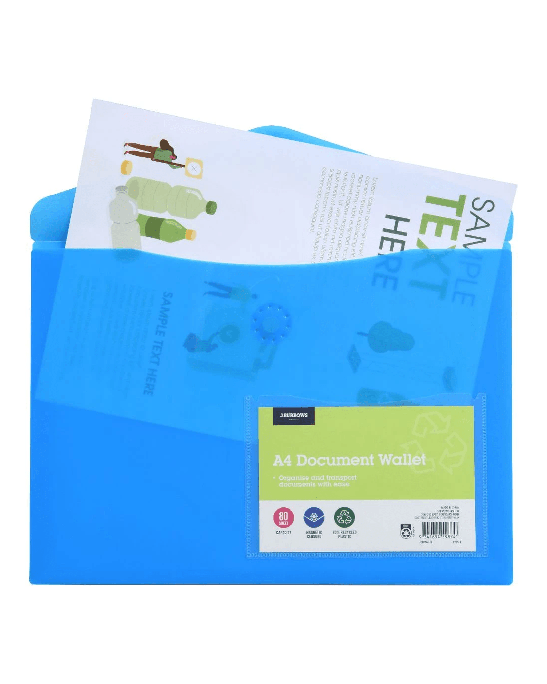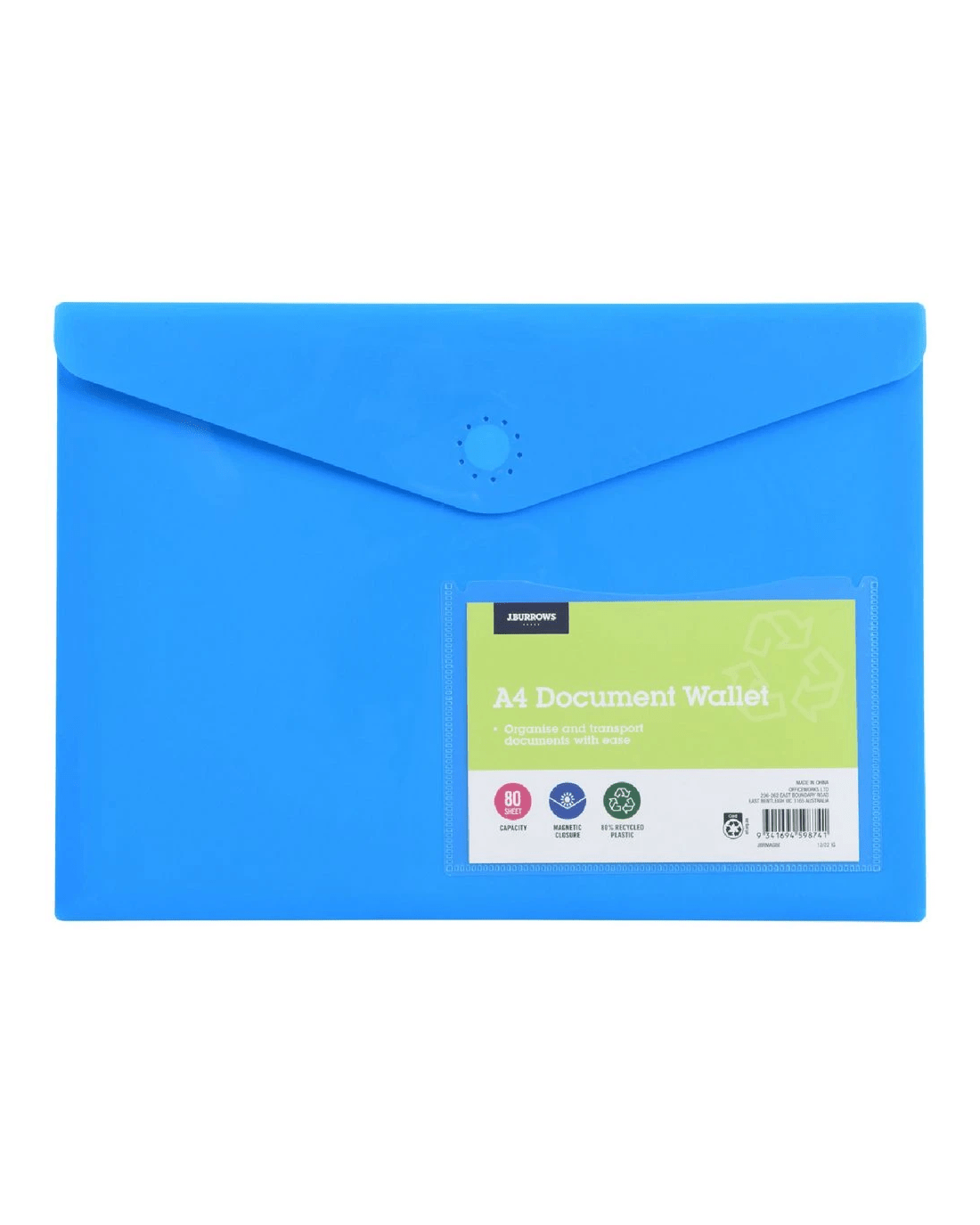 Sold by OfficeworksJ.Burrows A4 Document Wallet Magnetic Closure Blue