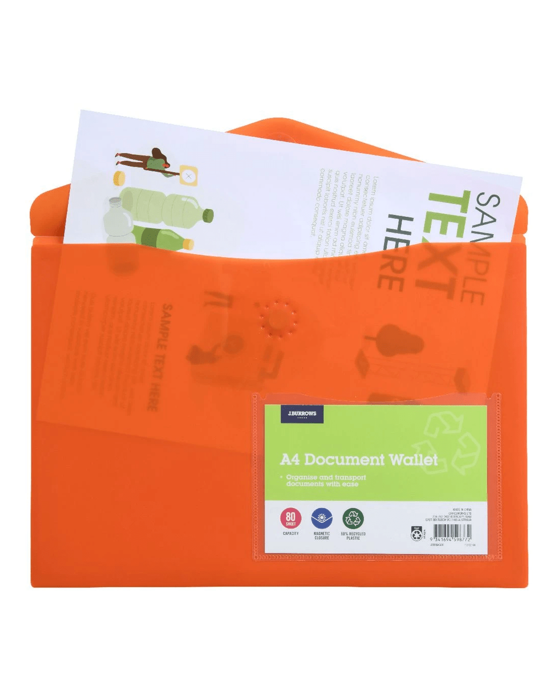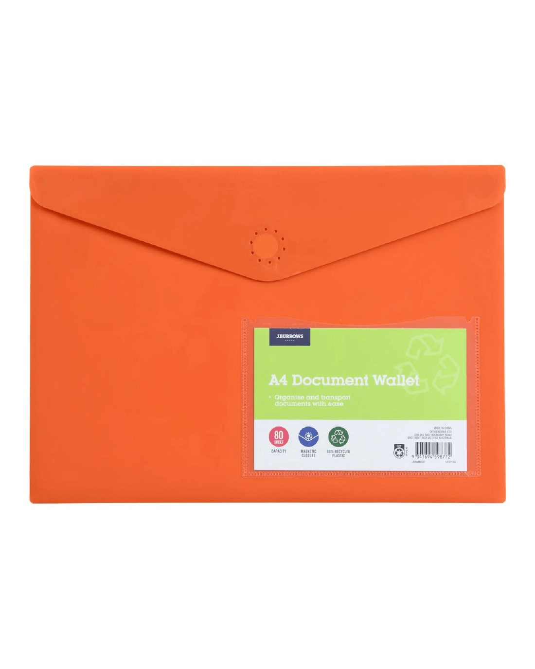 J.Burrows A4 Document Wallet Magnetic Closure Orange