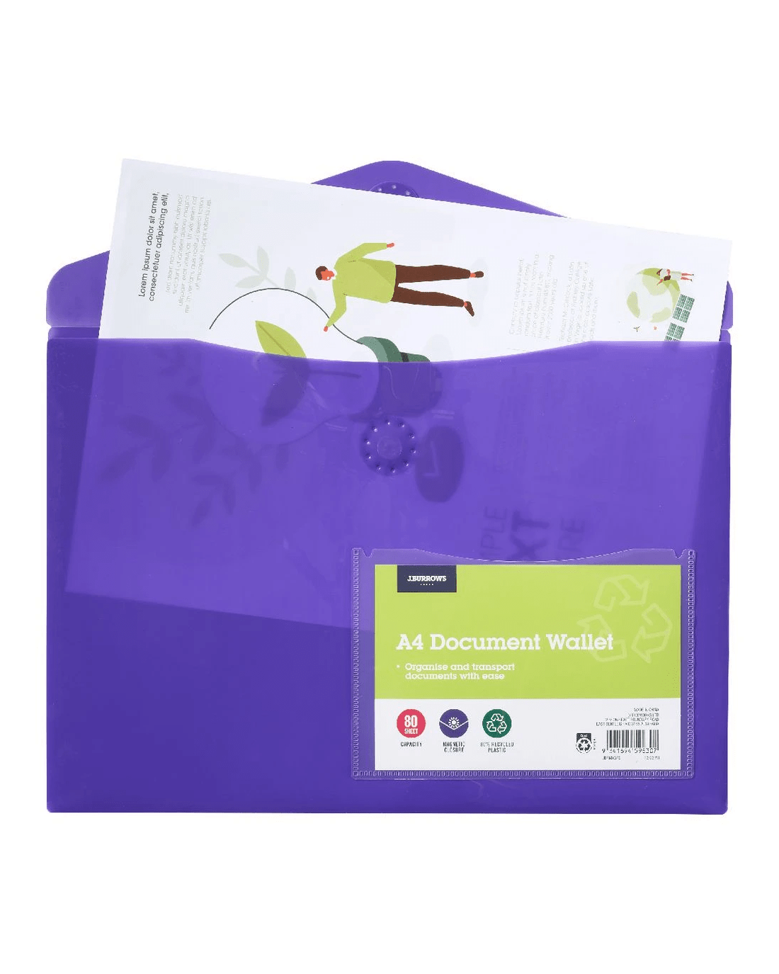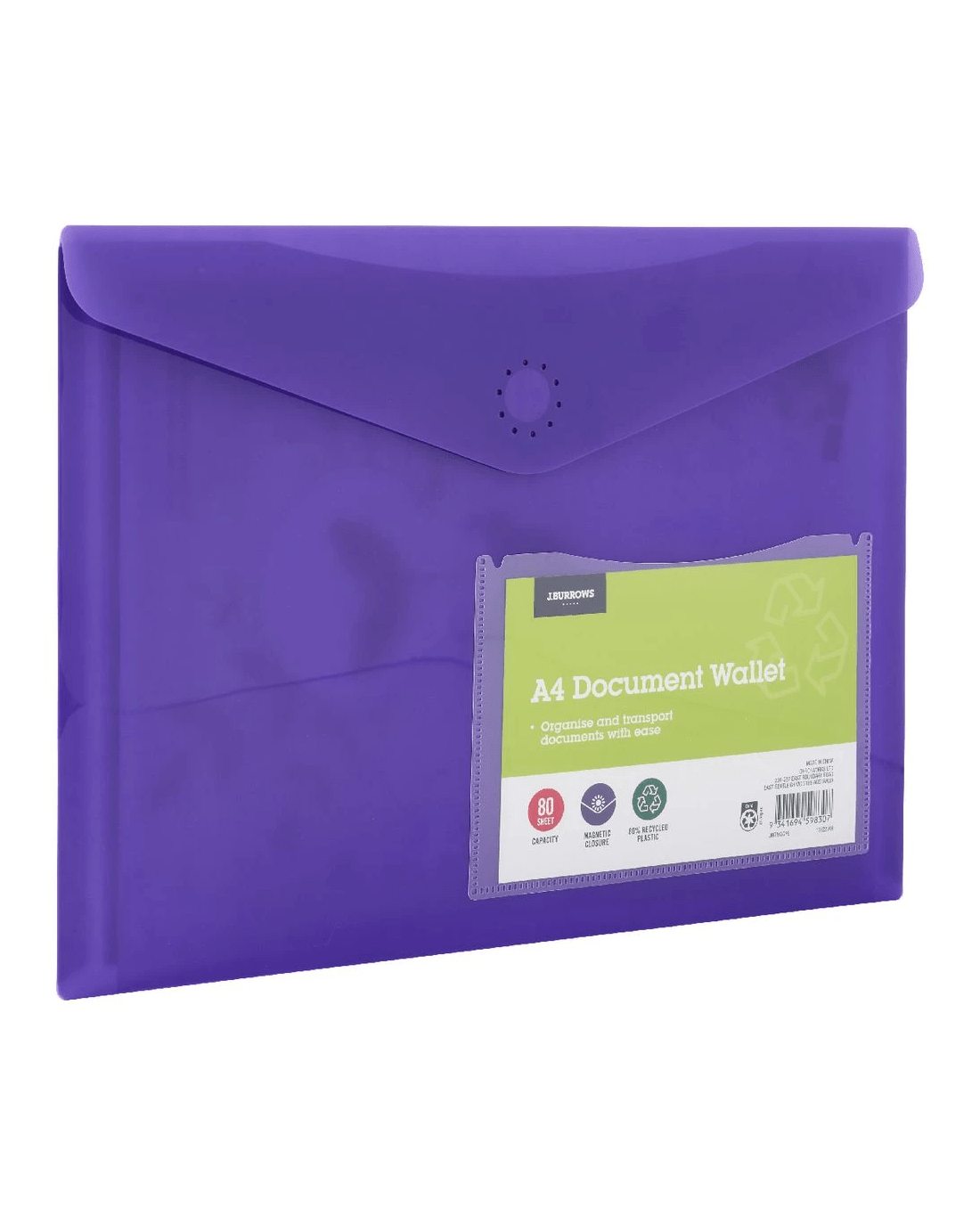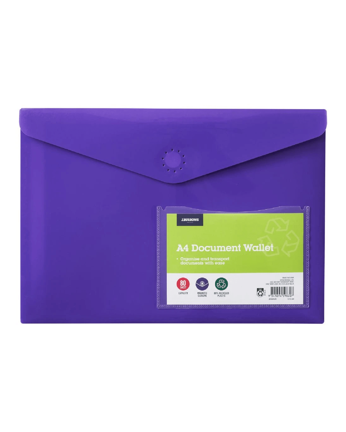 Sold by OfficeworksJ.Burrows A4 Document Wallet Magnetic Closure Purple