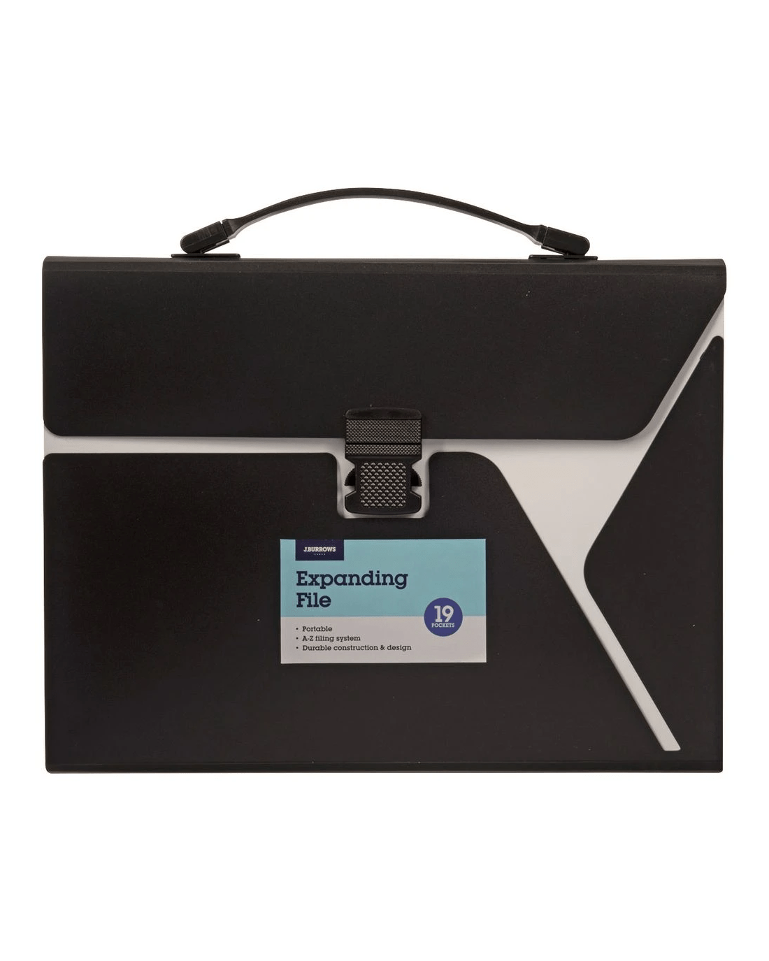 J.Burrows A4 Expanding File 19 Pocket Button Black