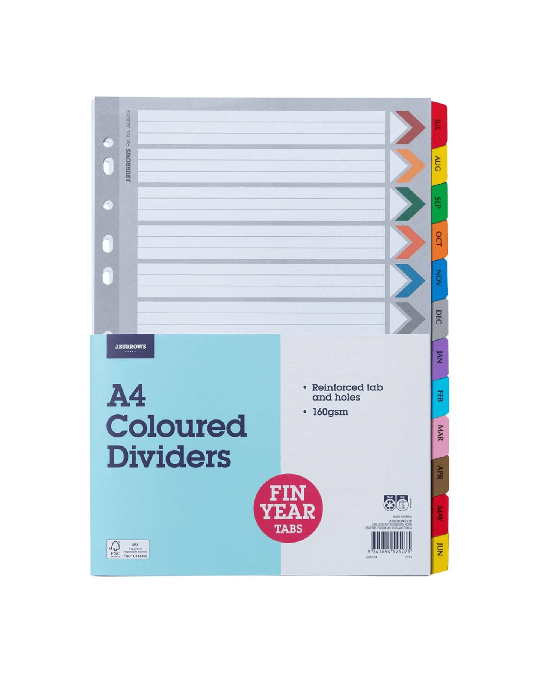 Sold by OfficeworksJ.Burrows A4 Financial Year Tab Dividers Paper 12 Pack