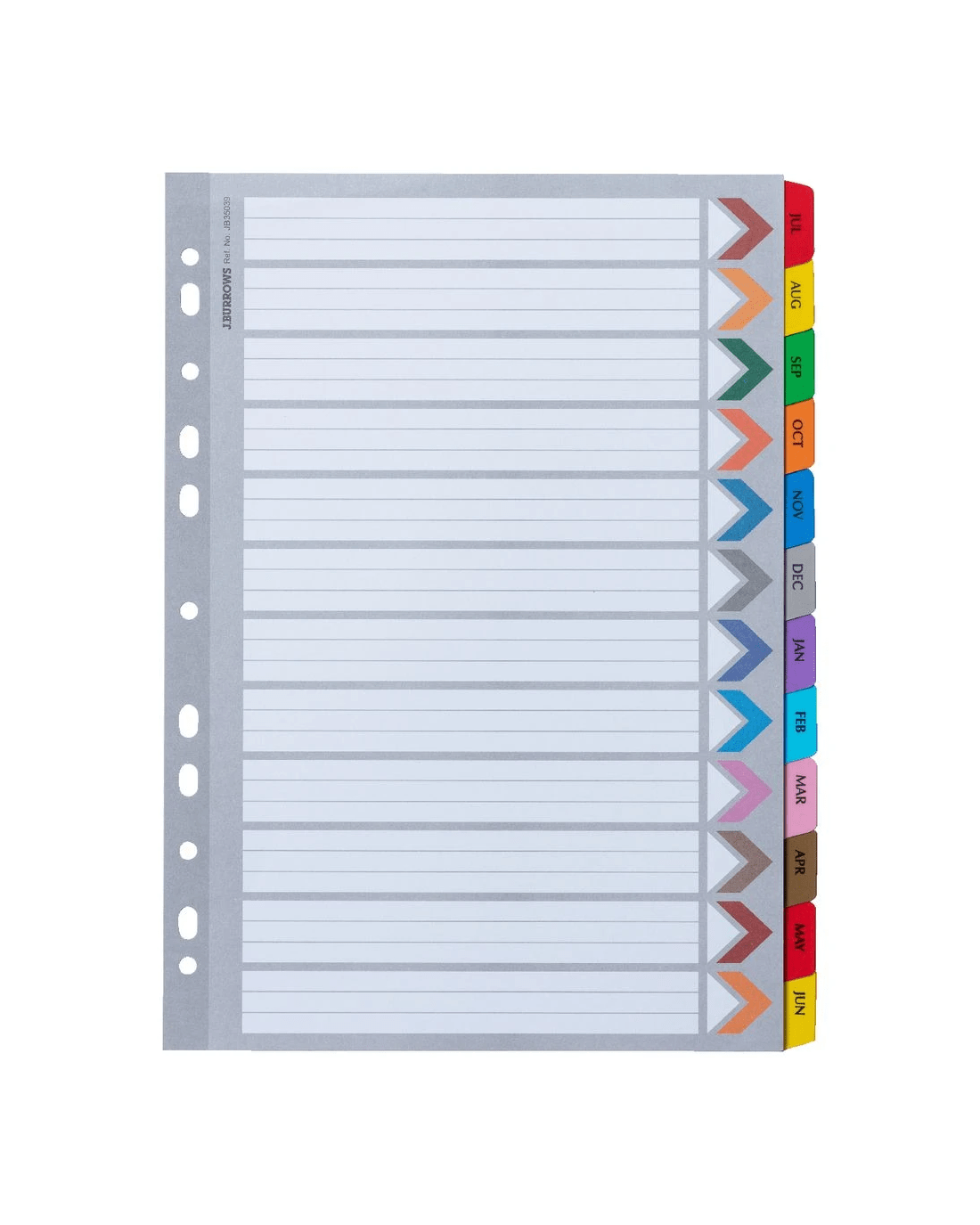 Use these J.Burrows Financial Year Tab Dividers to separate and organise your documents inside your binder. The reinforced holes perfectly line up with most binders, while the tabs allow you to organise your files month-to-month. These dividers are durable and handy, coming in a 12 pack for all of your binder needs.