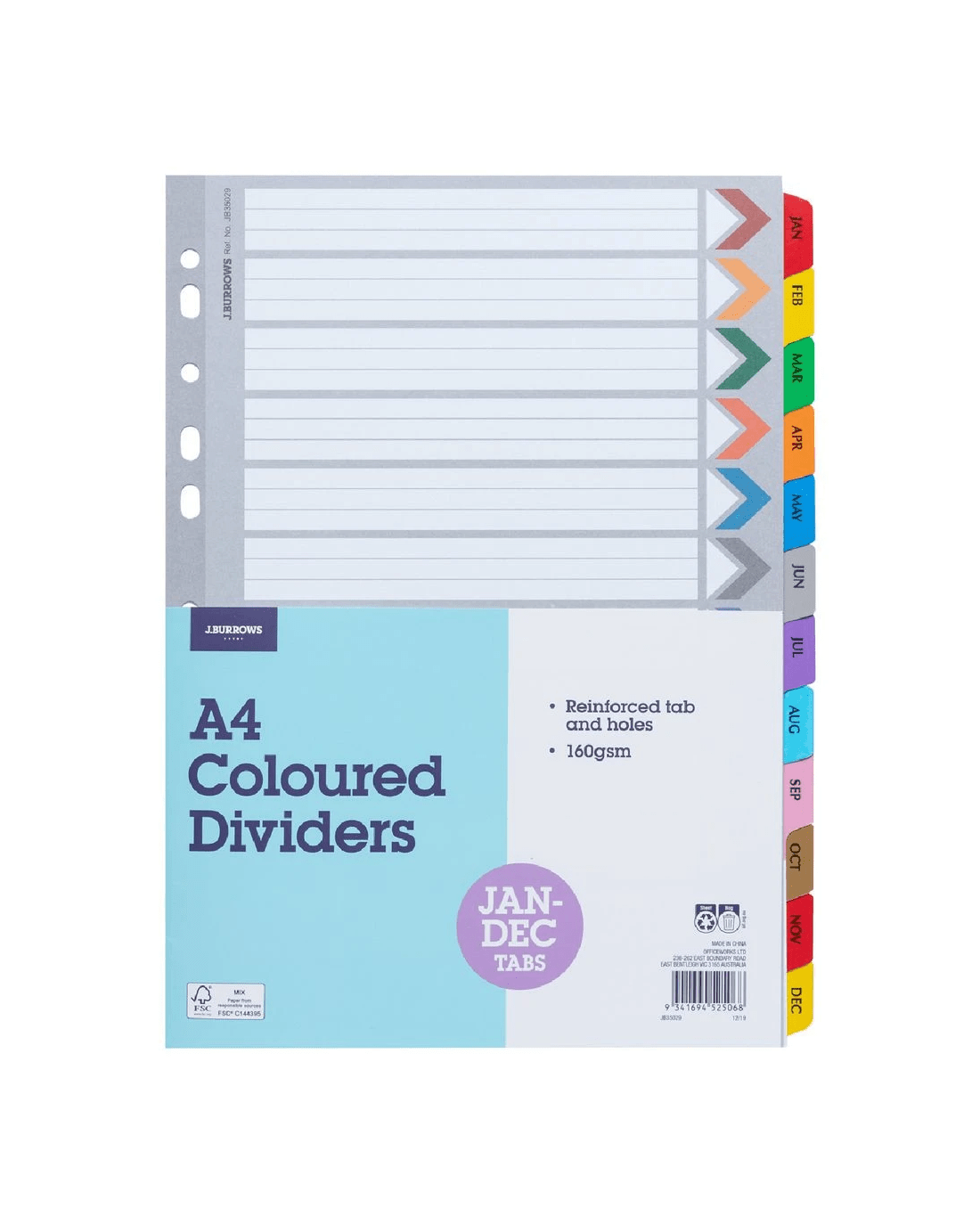 Use these J.Burrows January-December Tab Dividers to separate and organise your documents inside your binder. The reinforced holes perfectly line up with most binders, while the tabs allow you to organise your files month-to-month. These dividers are durable and handy and come in a 12 pack for all of your binder needs.