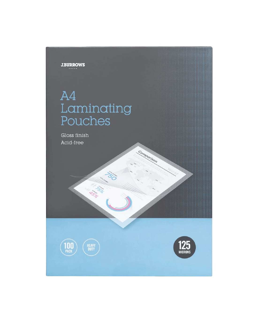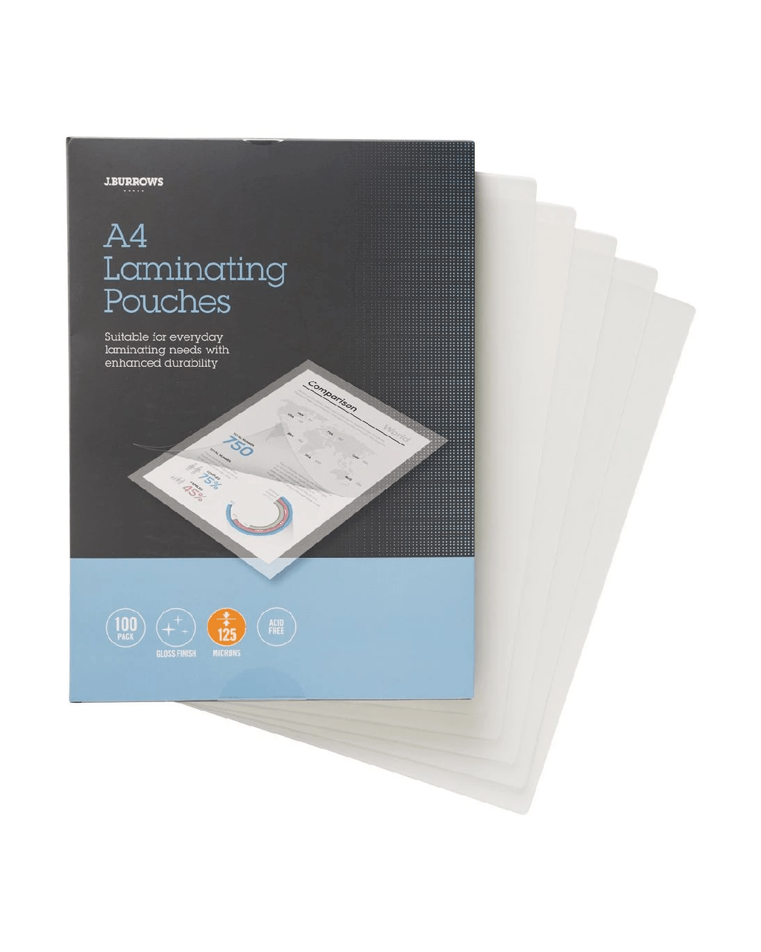 These J.Burrows A4 Laminating Pouches are a great way to protect important documents from moisture and tears. The 125 micron pouches will extend the life of your documents and allow you to use them over and over.