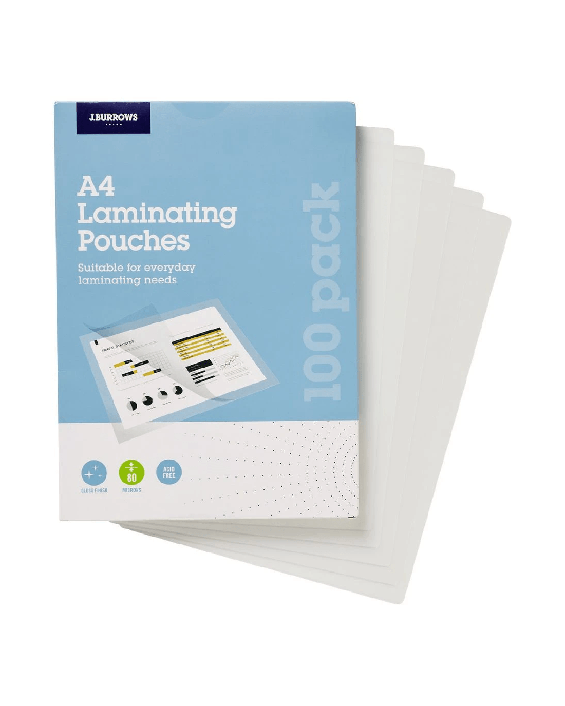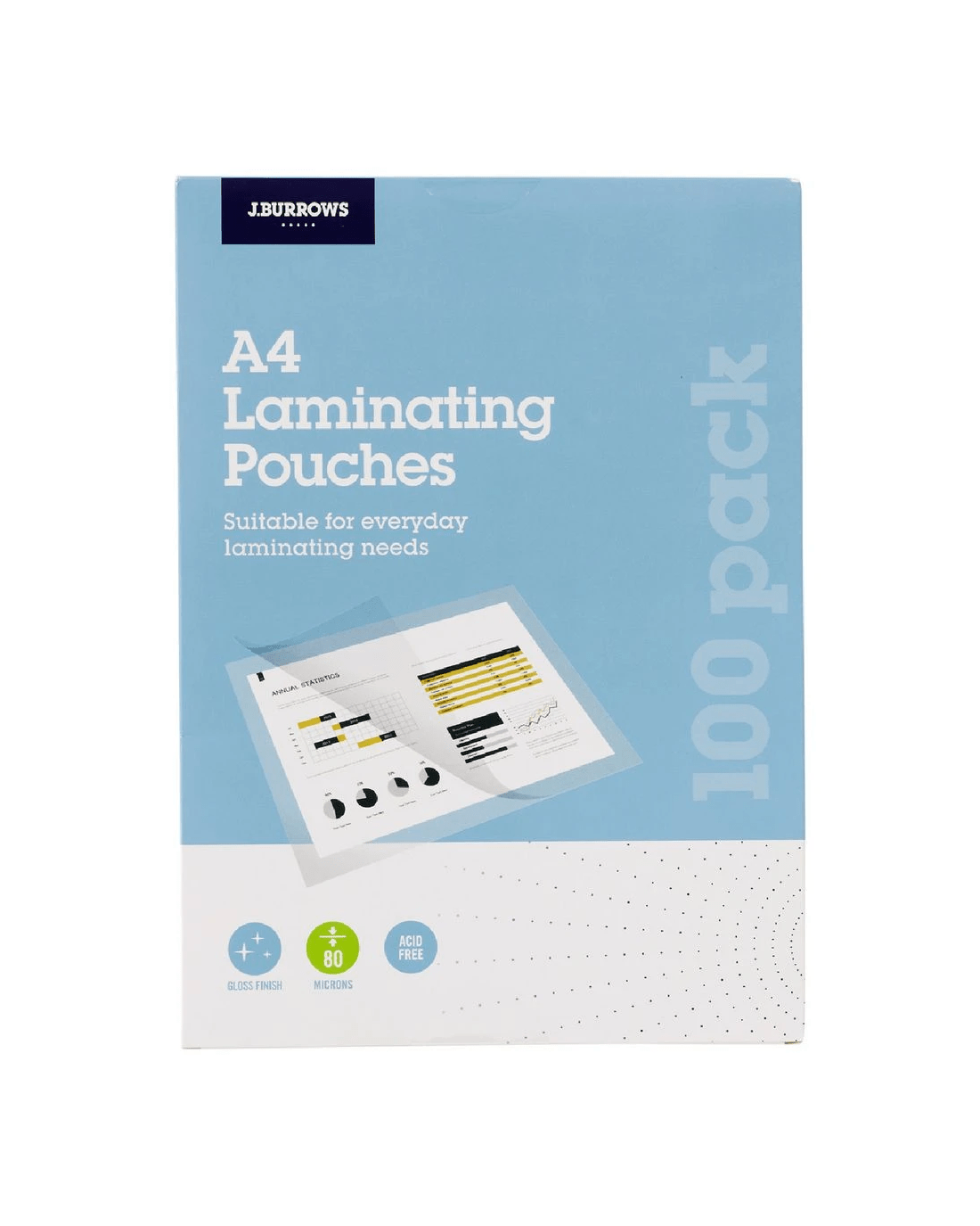 J.Burrows A4 Laminating Pouches Gloss 100 Pack