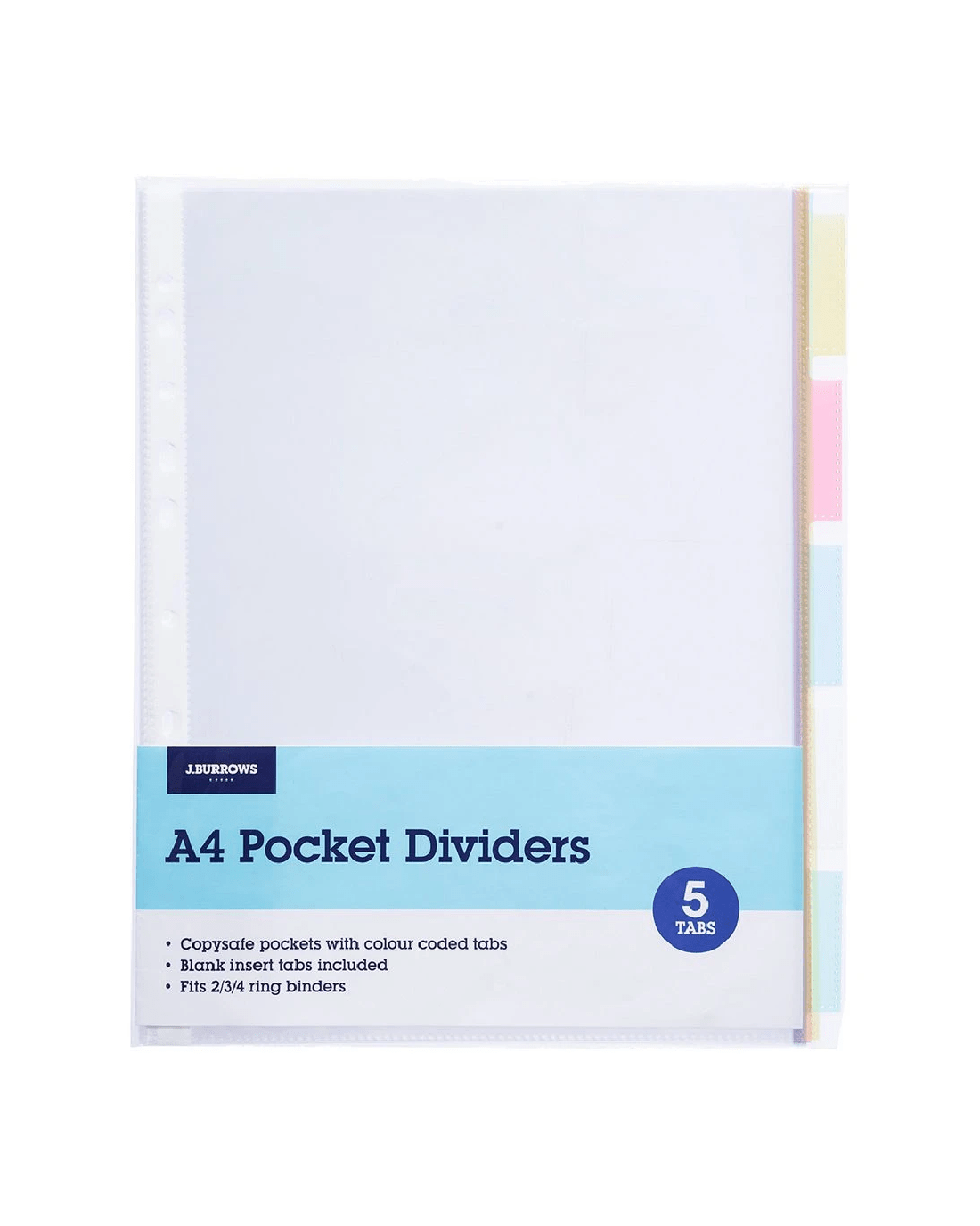 Sold by OfficeworksJ.Burrows A4 Pocket Divider 5 Tab Clear