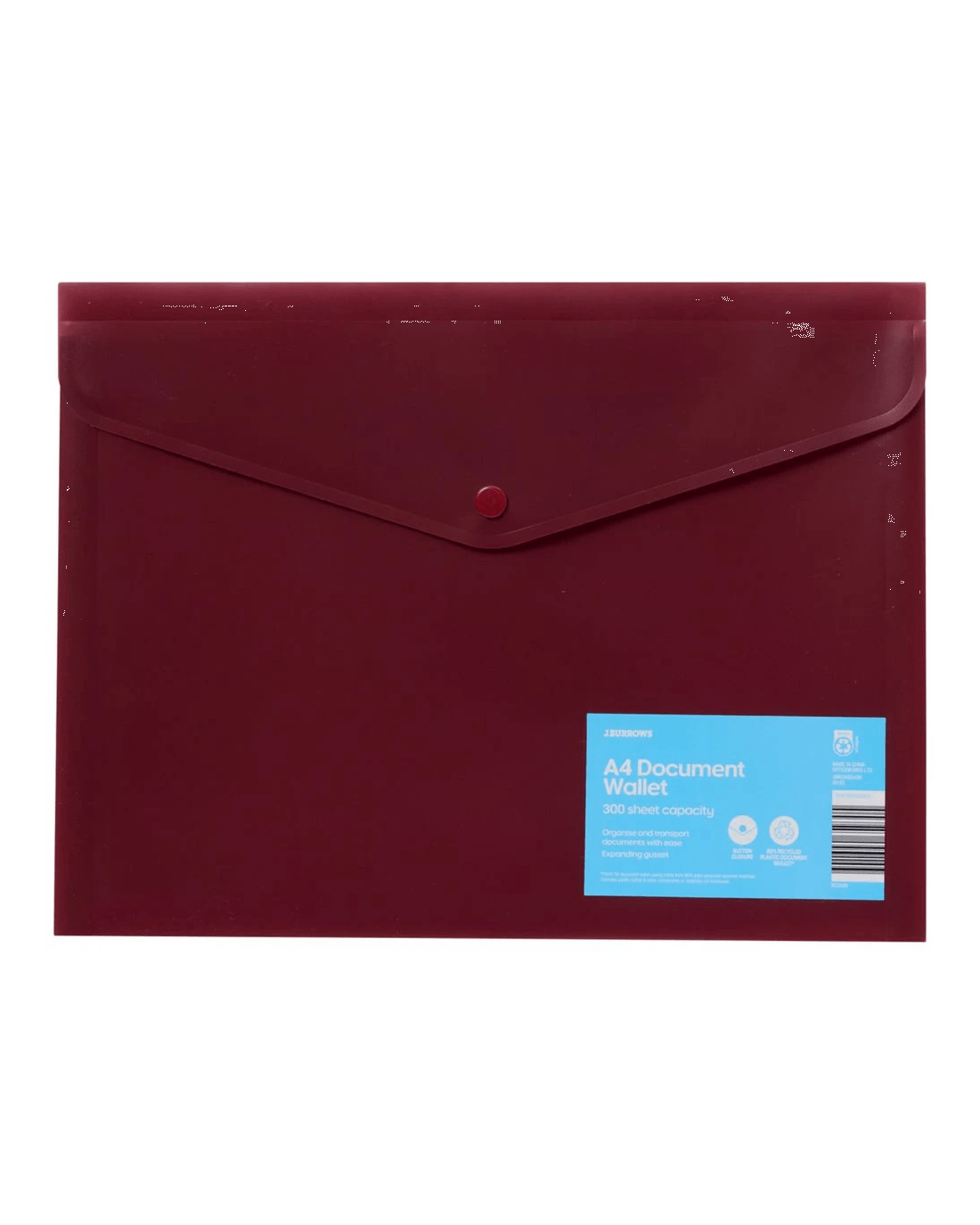 J.Burrows A4 Recycled Button Document Wallet Burgundy