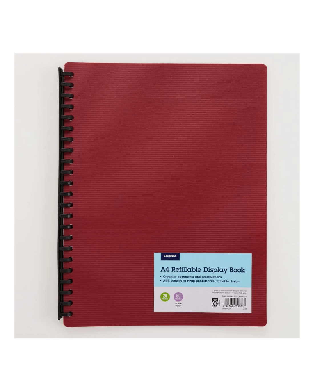 Sold by OfficeworksJ.Burrows A4 Refillable Display Book 20 Pockets Red