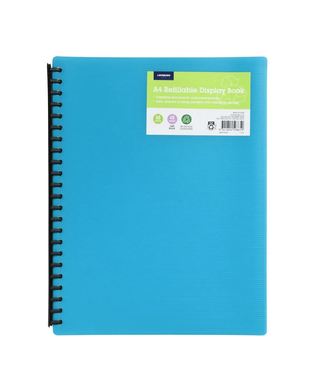 Sold by OfficeworksJ.Burrows A4 Refillable Display Book 60 Pocket Teal