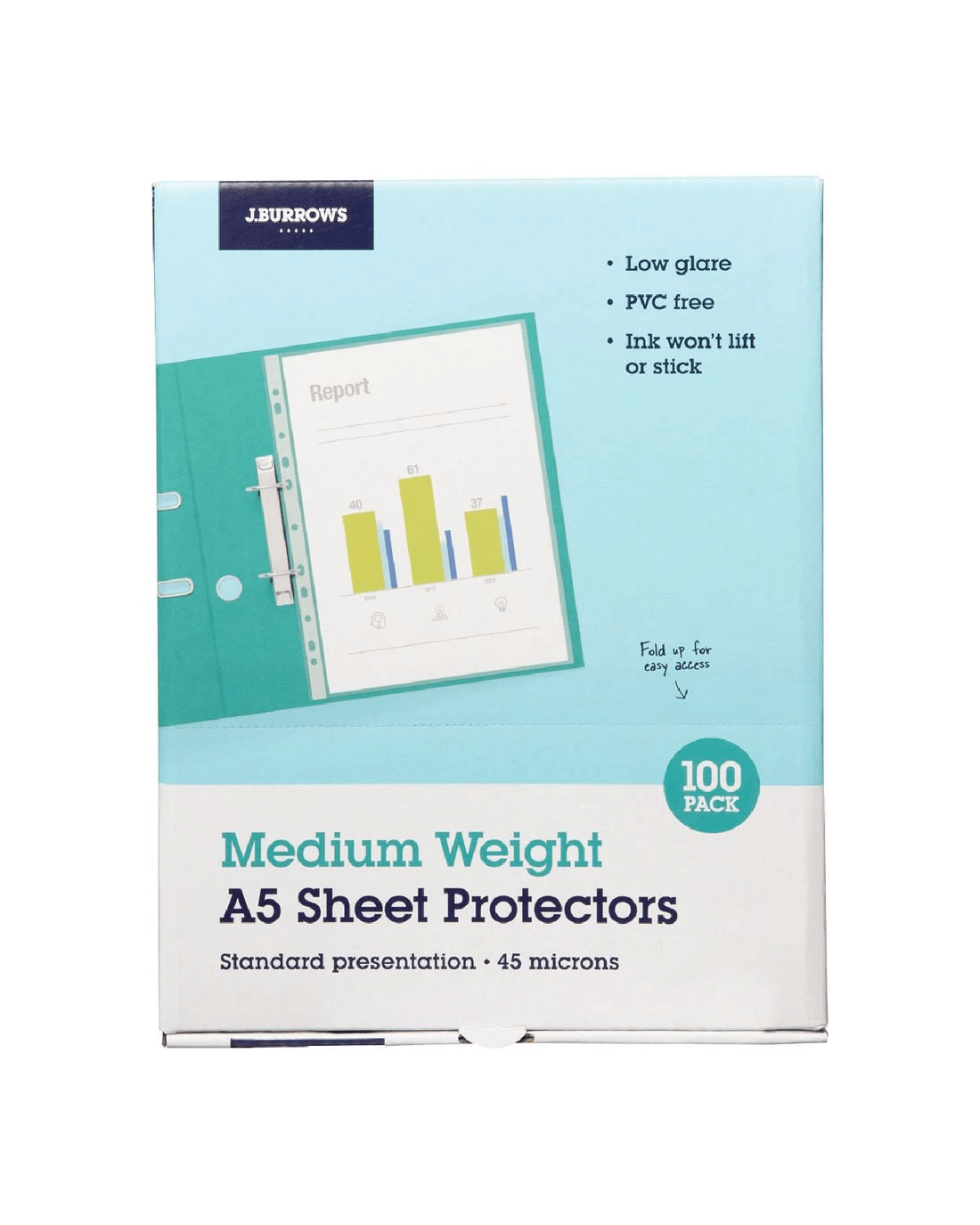 J.Burrows A5 45 Micron Sheet Protectors 100 Pack