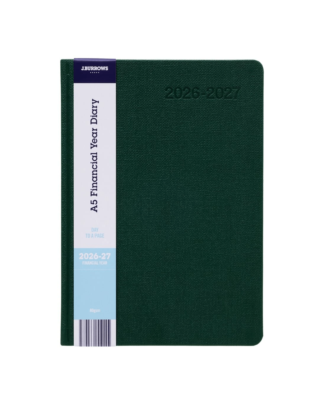 Sold by OfficeworksJ.Burrows A5 Day to Page Textured FY26/27 Diary Green