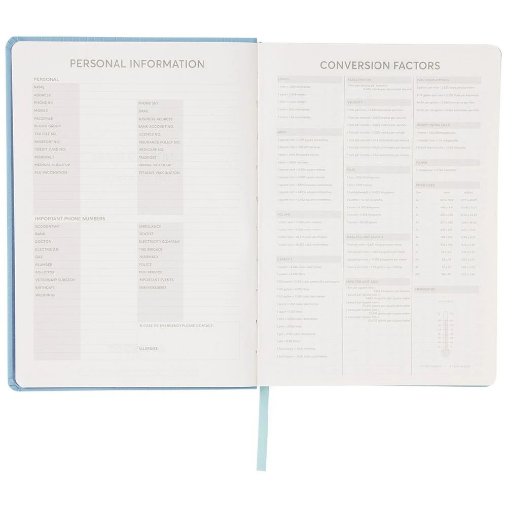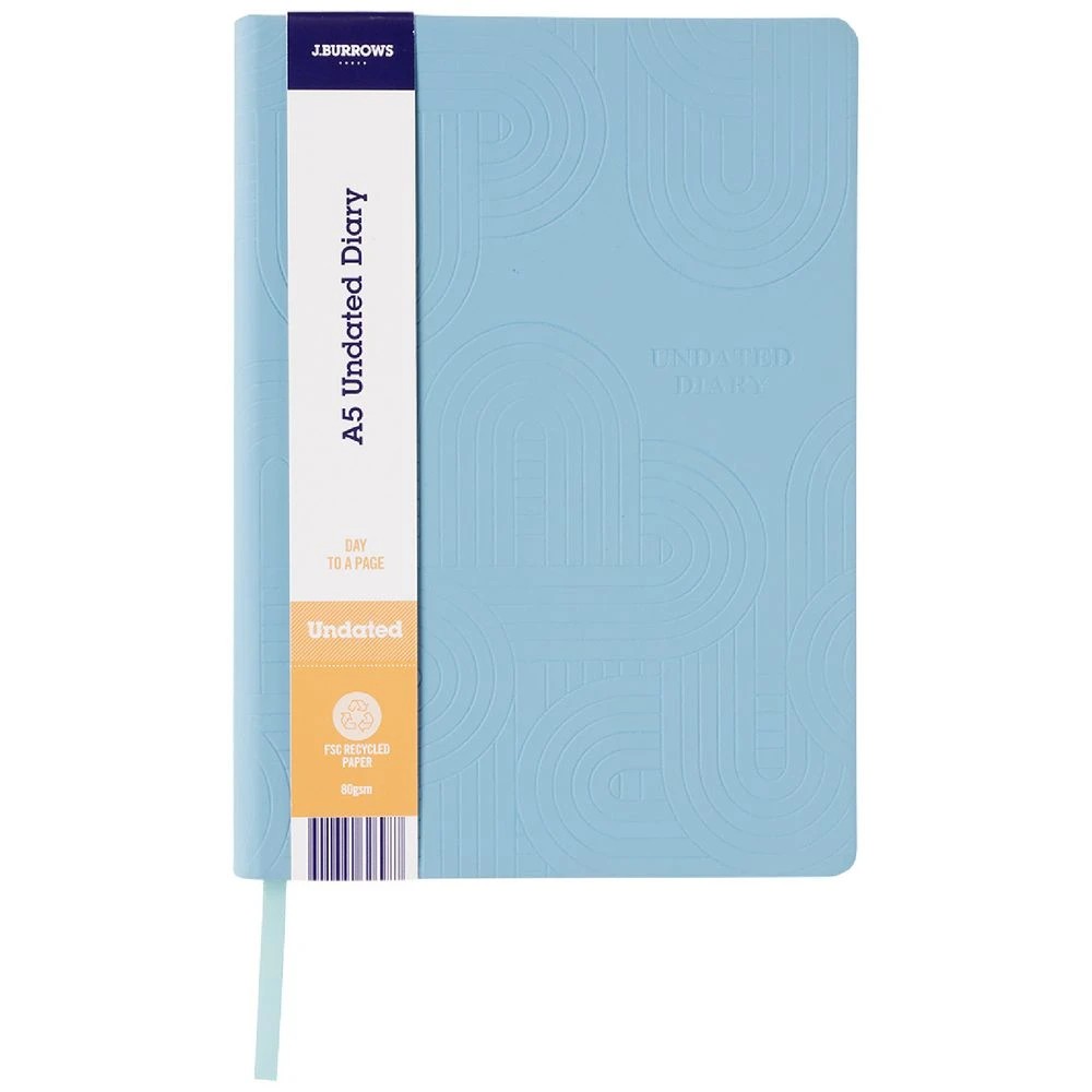 J.Burrows A5 Day to Page Undated Embossed Diary Blue