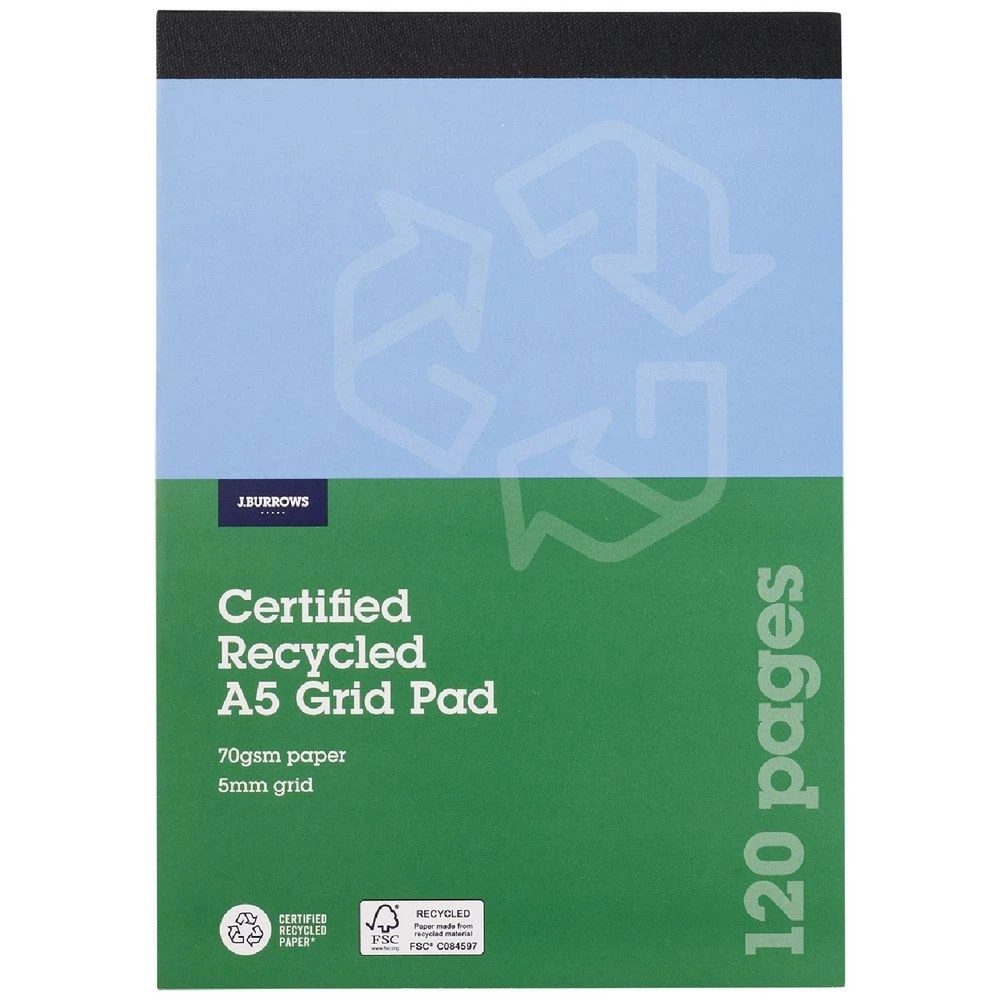 J.Burrows A5 Grid Notepad 5mm 120 Page