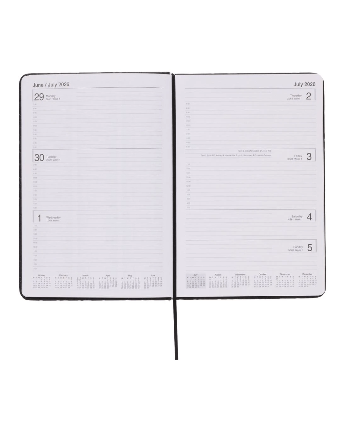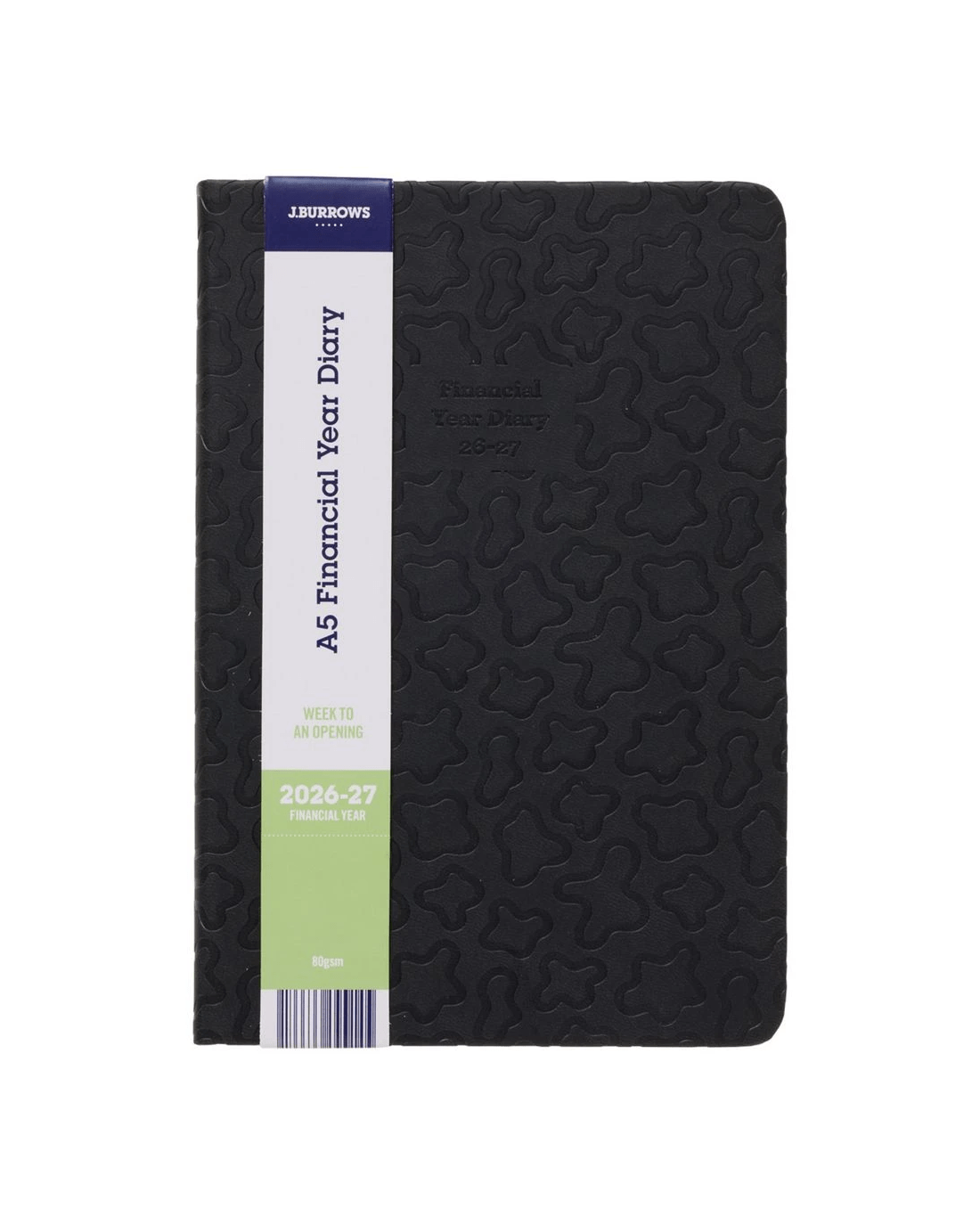 Sold by OfficeworksJ.Burrows A5 Week-To-View Embossed Diary FY26/27 Black