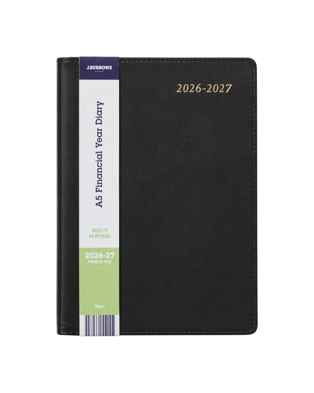 Sold by OfficeworksJ.Burrows A5 Week to View Executive FY26/27 Diary Black