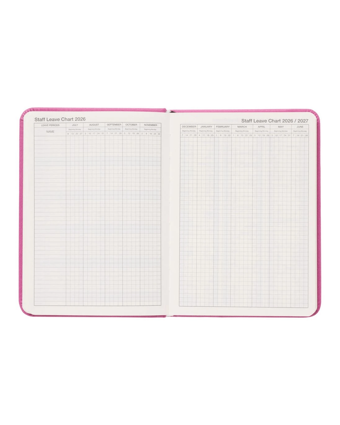 J.Burrows A6 Week to View PU FY26/27 Diary Pink