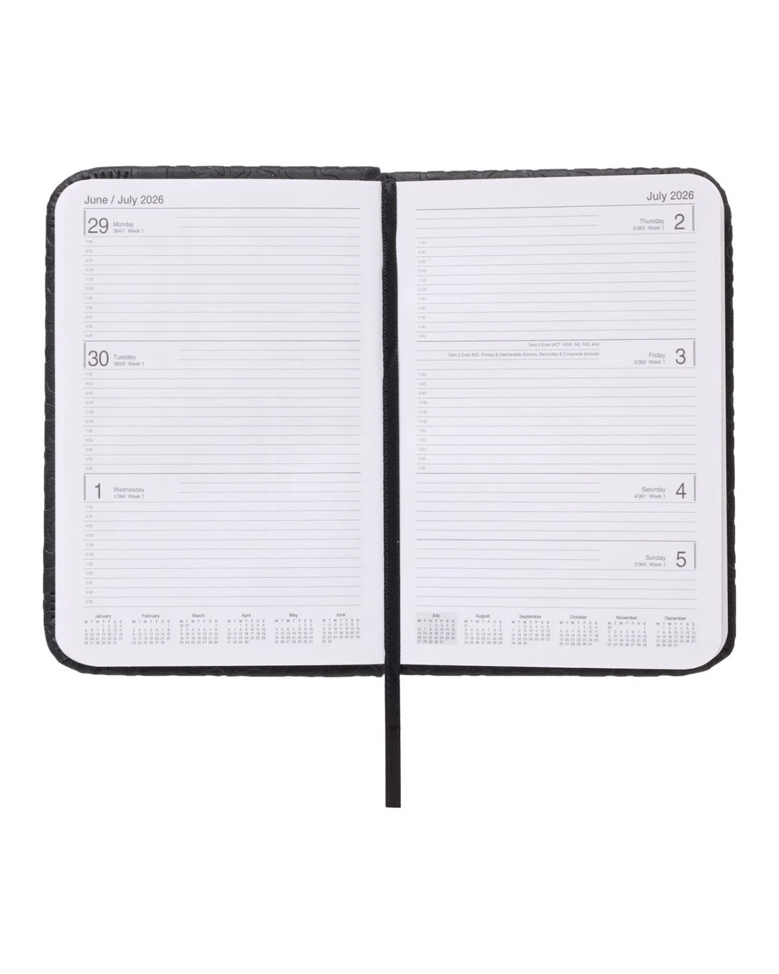 Sold by OfficeworksJ.Burrows A7 Week-To-View Embossed Diary FY26/27 Black
