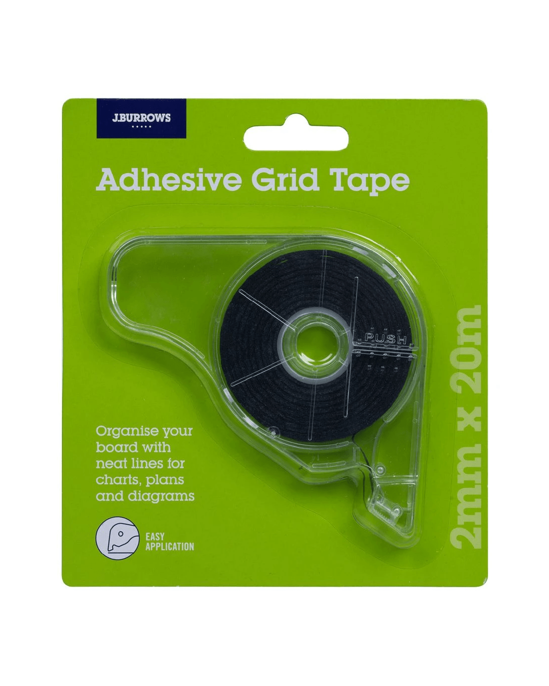 J.Burrows Adhesive Grid Tape can be used to rule lines and create grids on your whiteboard. It comes in a convenient handheld dispenser for easily pulling the tape off and is self-adhesive so you can simply apply the tape without any drying time required.