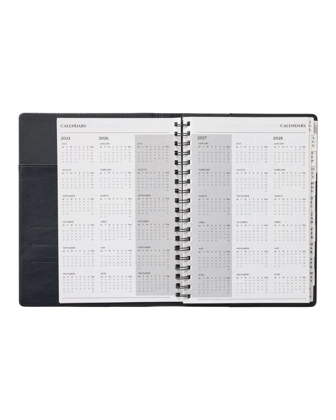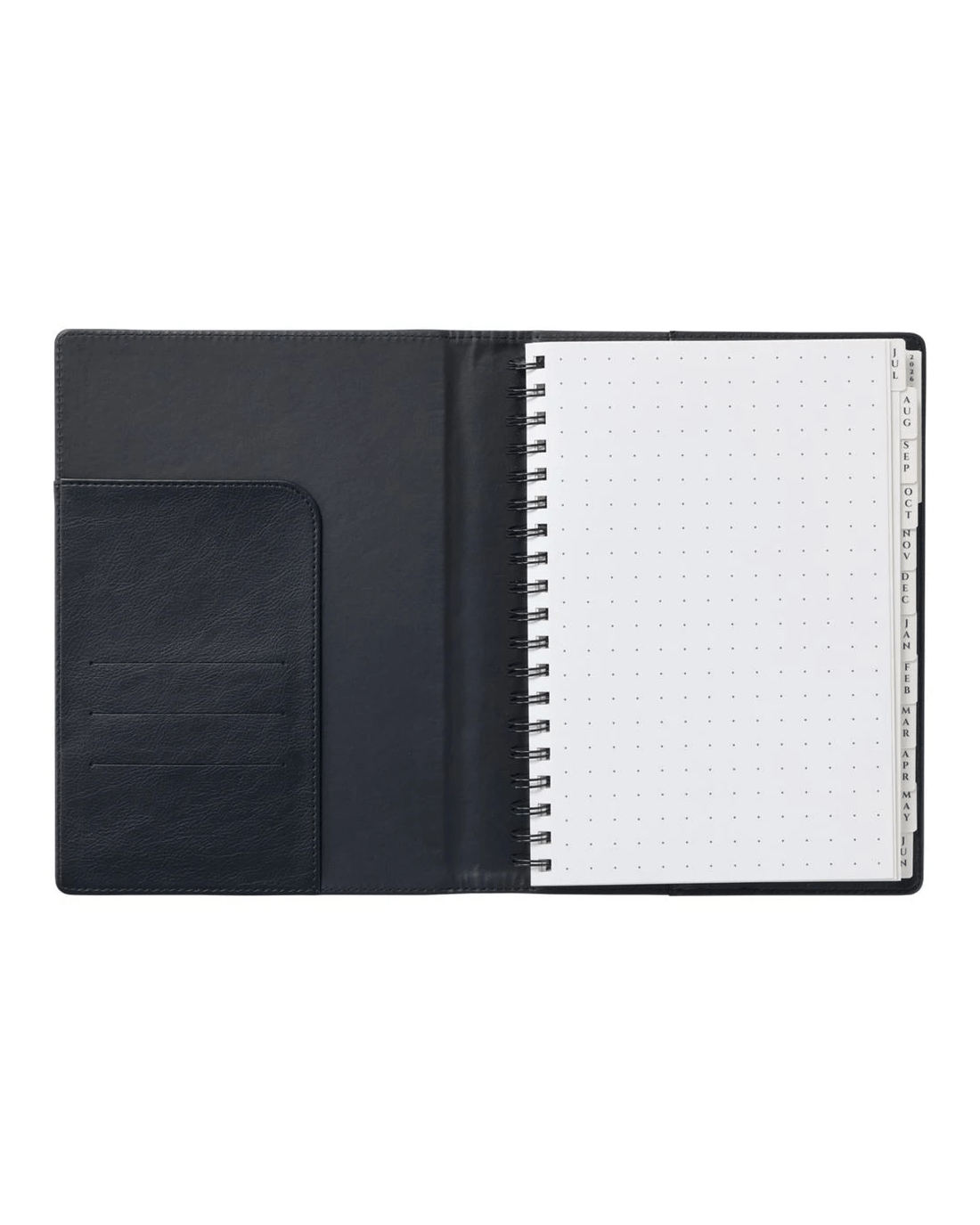 This J.Burrows Portfolio Diary helps plan and schedule when you're on the go. It has a padded, polyurethane cover, and a strong spiral binding to keep your pages and files together. It is refillable, so you can reuse your planner year after year.