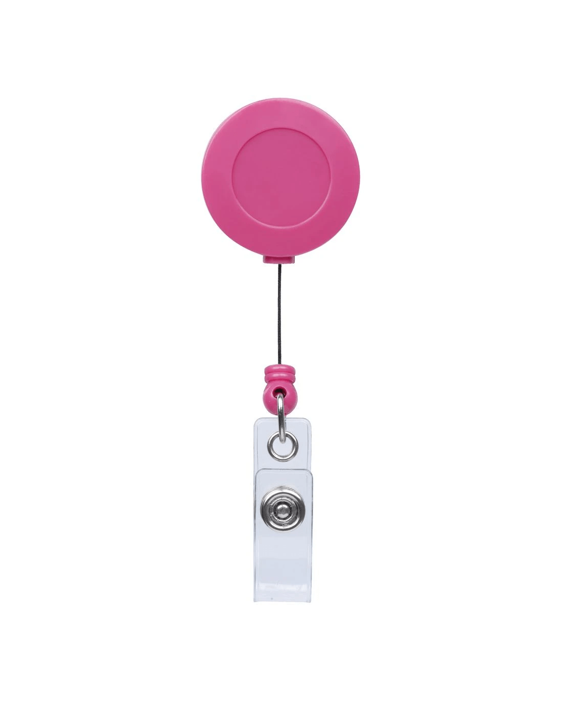 - This badge reel is pink.