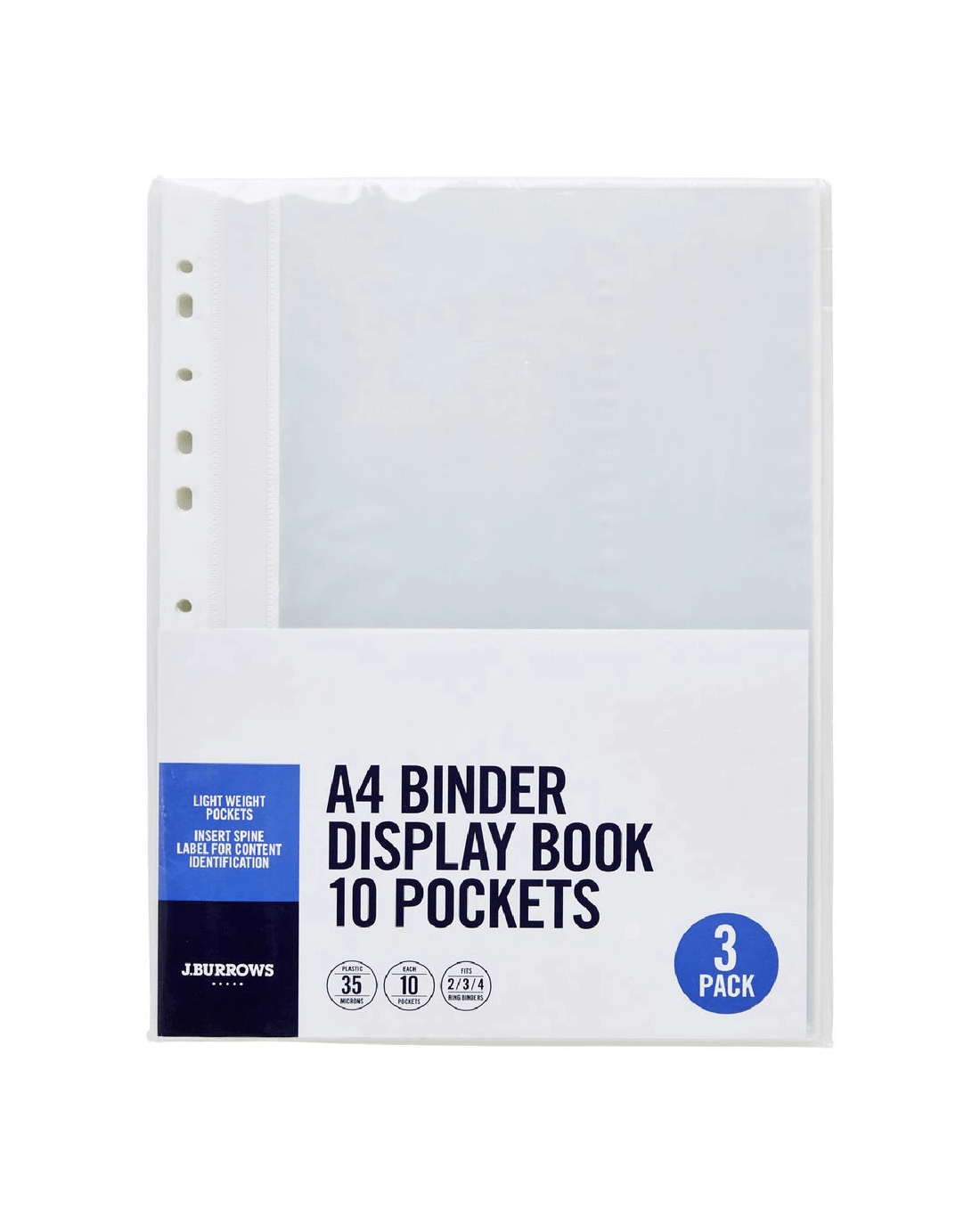 These J.Burrows Binder Display Books allow you to present and display your documents then easily take them on the go in your binder. Each book has a pre-punched margin to fit all standard 2, 3 and 4 ring binders or lever arch files.