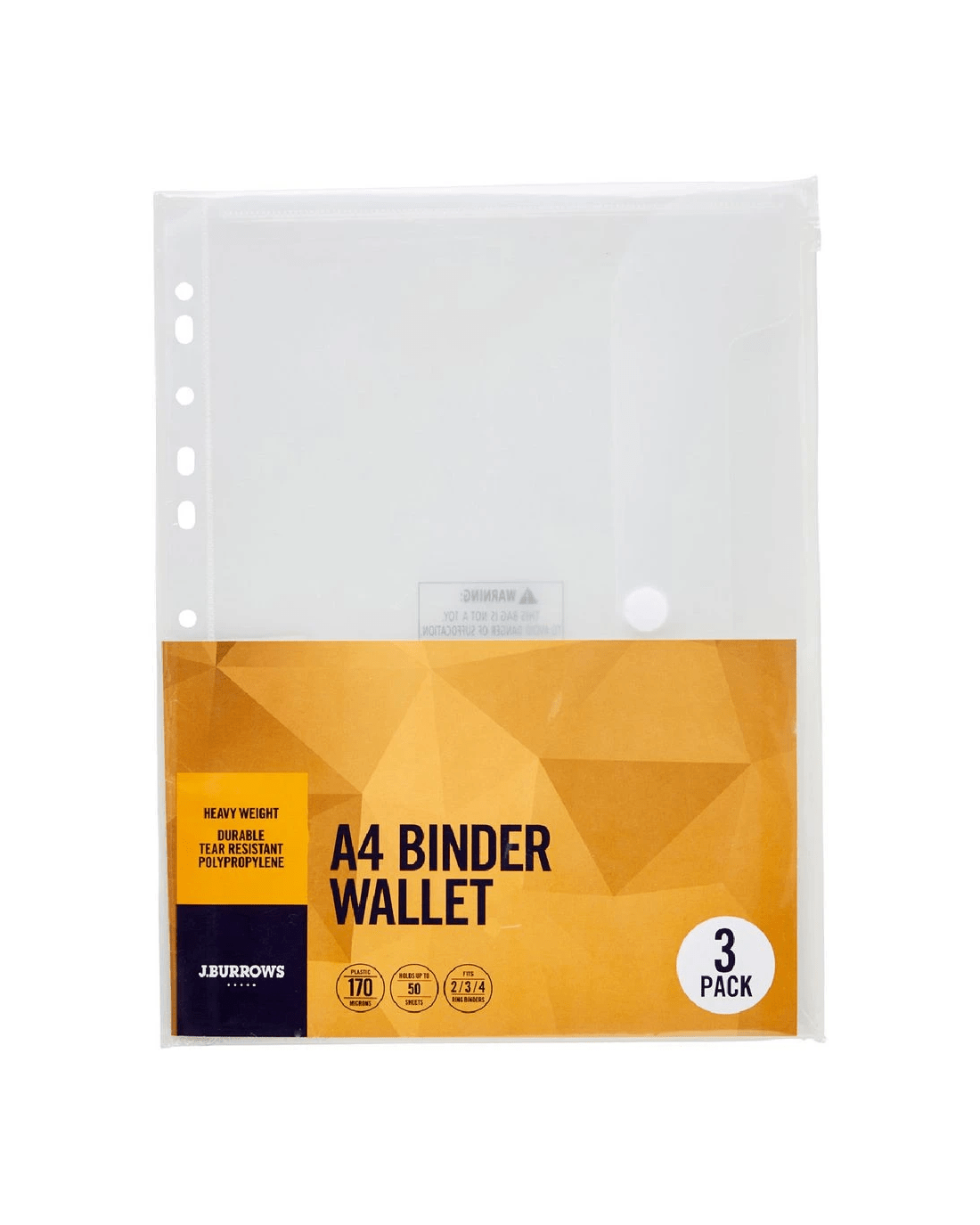 J.Burrows Binder Document Wallet A4 Clear 3 Pack