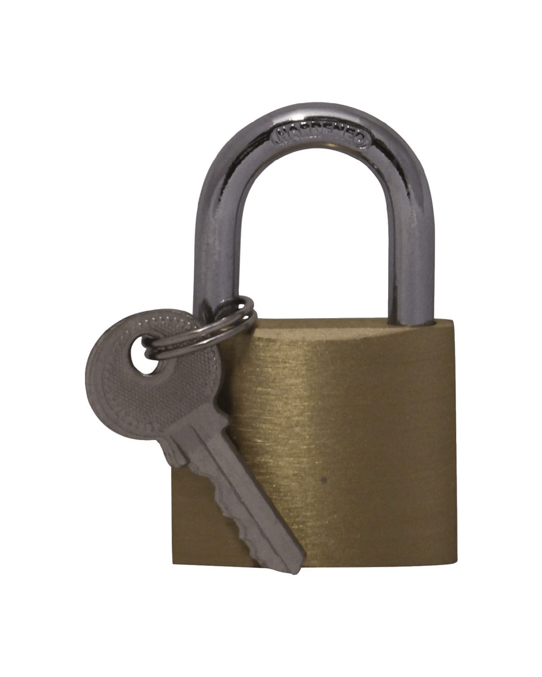 • The lock has a brass construction with a hardened steel shackle for durability.