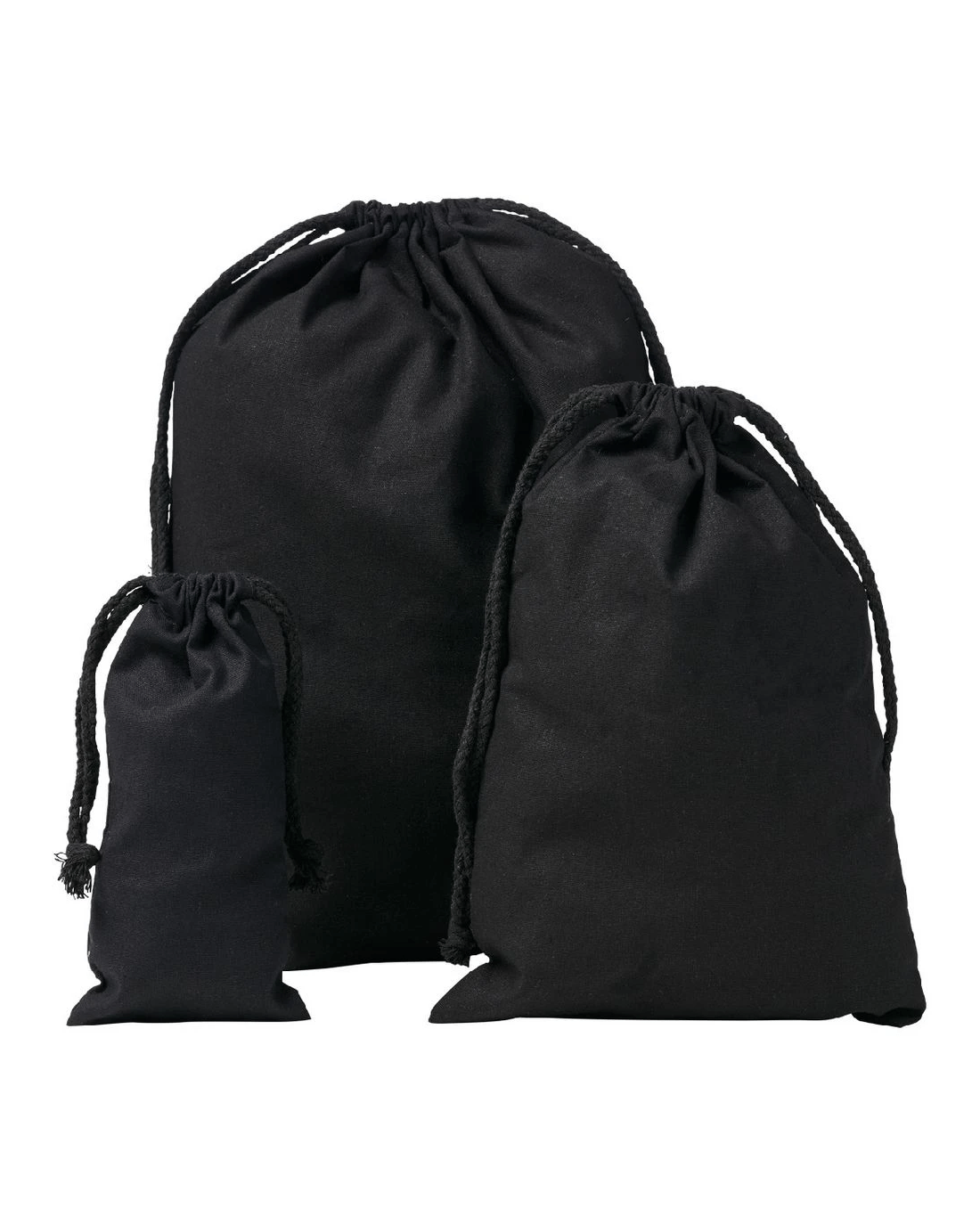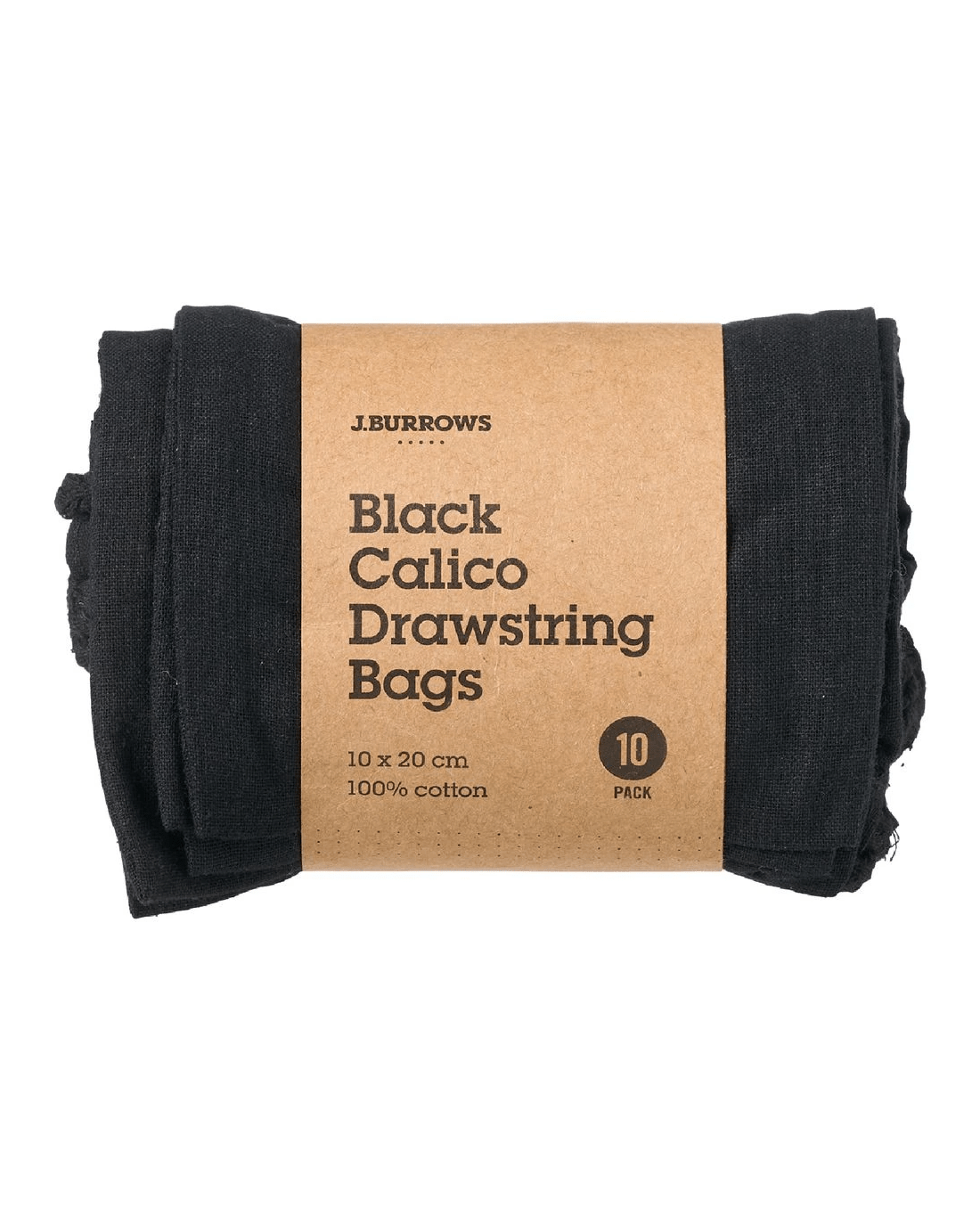 J.Burrows Calico Drawstring Bag 10 x 20cm Black 10 Pack