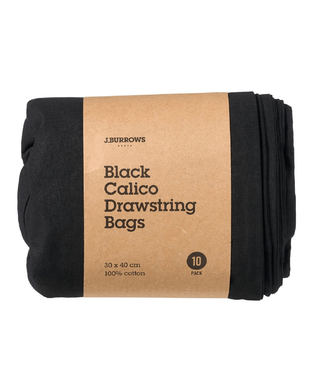 Sold by OfficeworksJ.Burrows Calico Drawstring Bag 30 x 40cm Black 10 Pack