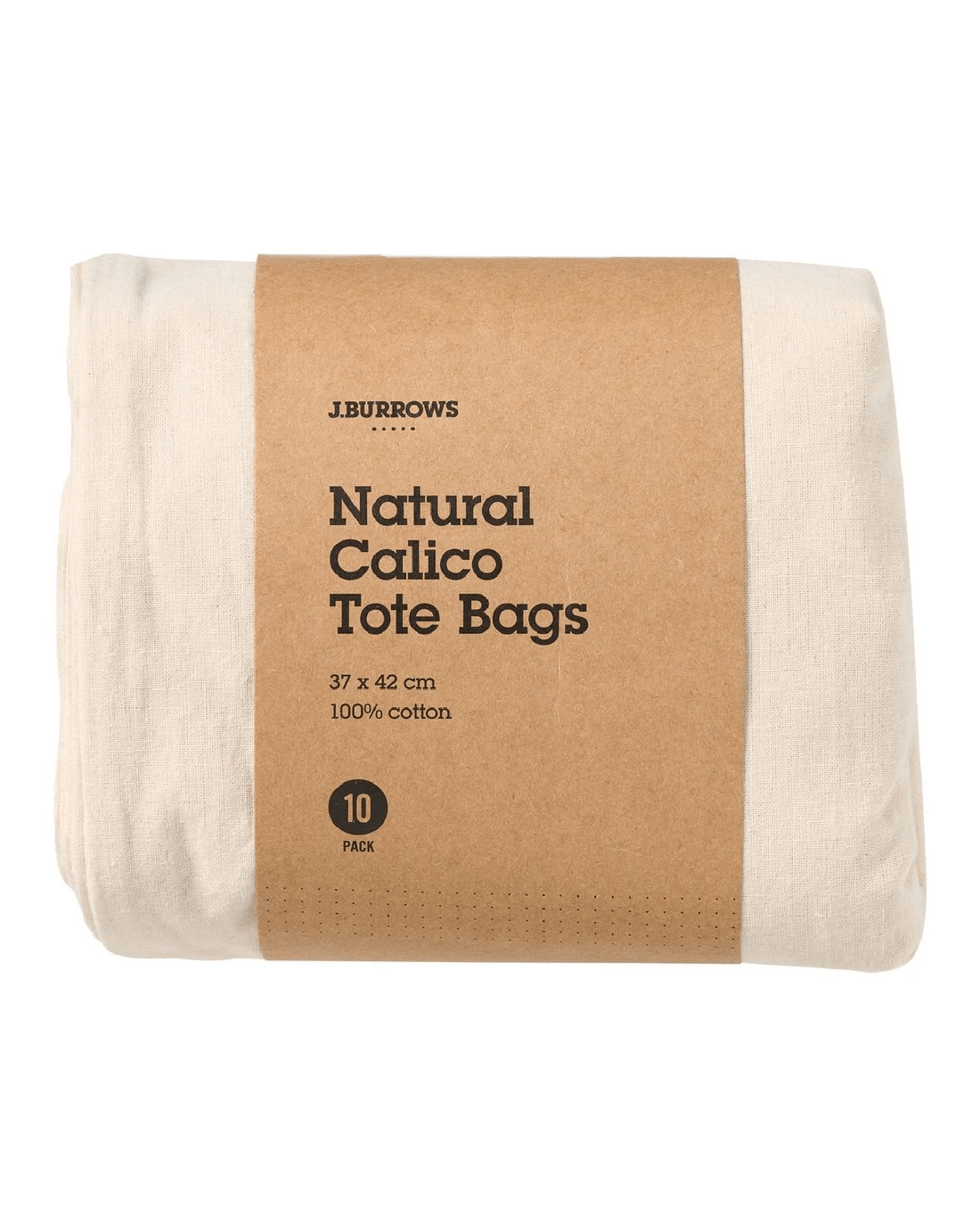 Sold by OfficeworksJ.Burrows Calico Tote Bag Natural 10 Pack